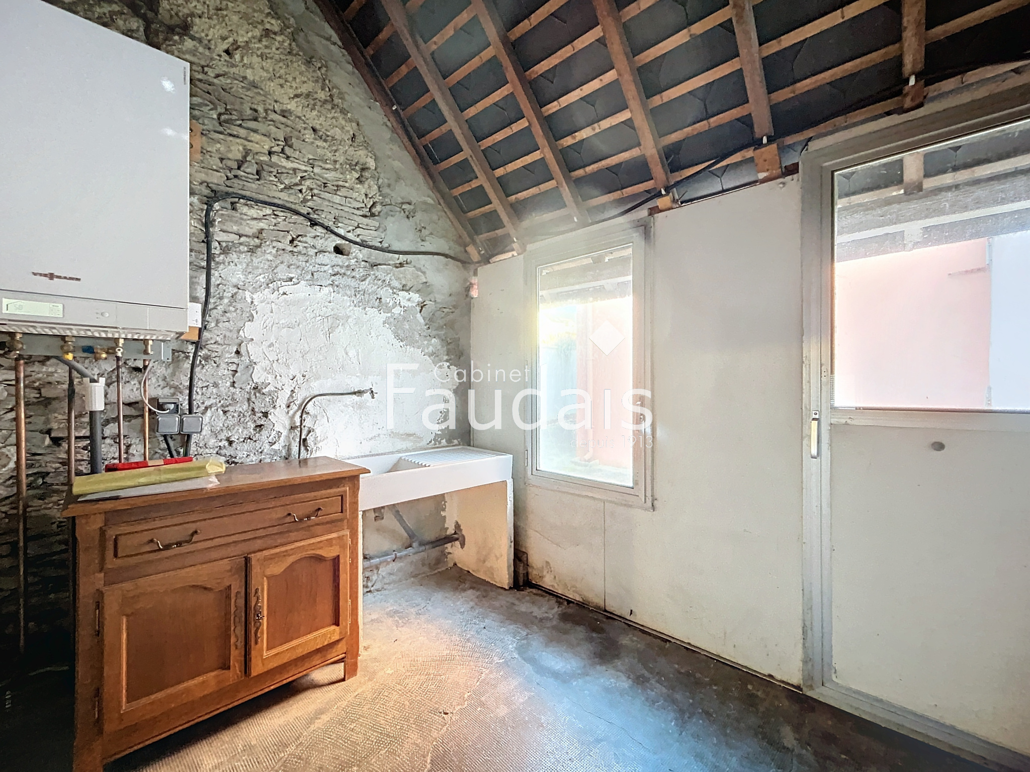 Saint-Lô (50000)Le cabinet Faudais vous présente cette charmante maison de ville atypique comprenant: entrée donnant sur une belle cuisine aménagée/équipée ouverte sur la salle à manger, salon, buanderie, wc, espace bureau. A l'étage: mezzanine, 2 belles chambres, salle d'eau.