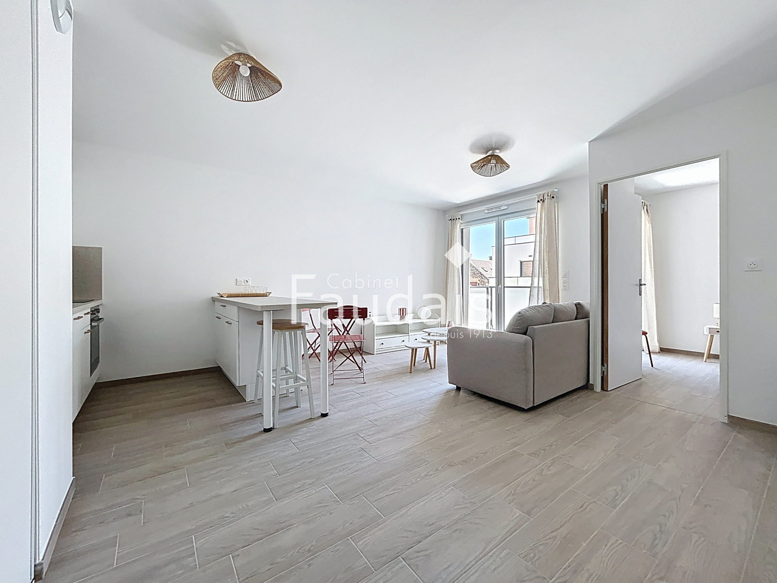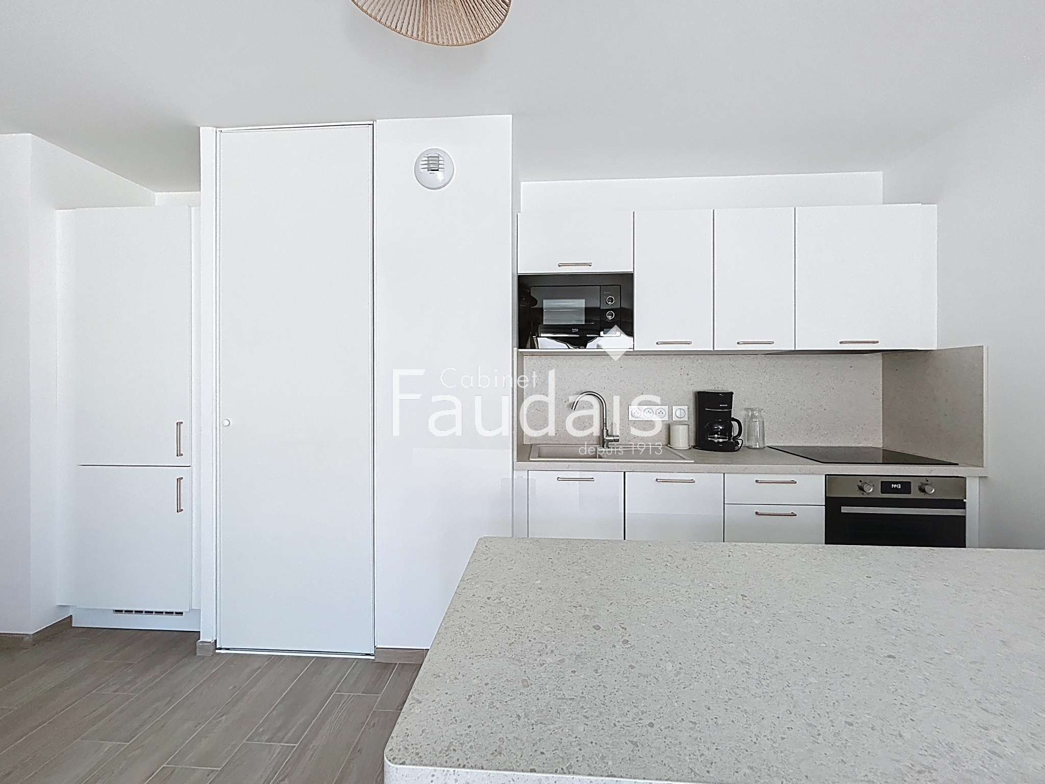 Barneville-Carteret (50270)BARNEVILLE BOURG Le Cabinet FAUDAIS vous propose cet appartement T2 neuf de 46 m2 meublé situé au cœur du bourg, deuxième étage avec ascenseur. Il est composé d'une pièce de vie lumineuse de 27 m2 avec coin cuisine équipée et aménagée, une chambre de 12,7 m2, une salle de bain, un WC indépendant et une terrasse de 8 m2. L'appartement est équipé d'un chauffage individuel, d'une place de stationnement intérieure privative et d'un local à vélo commun. L'appartement est à proximité de toutes les commodités: commerces d'alimentation, pharmacie, médecins, dentiste, opticien, tabac-presse, poste, écoles.