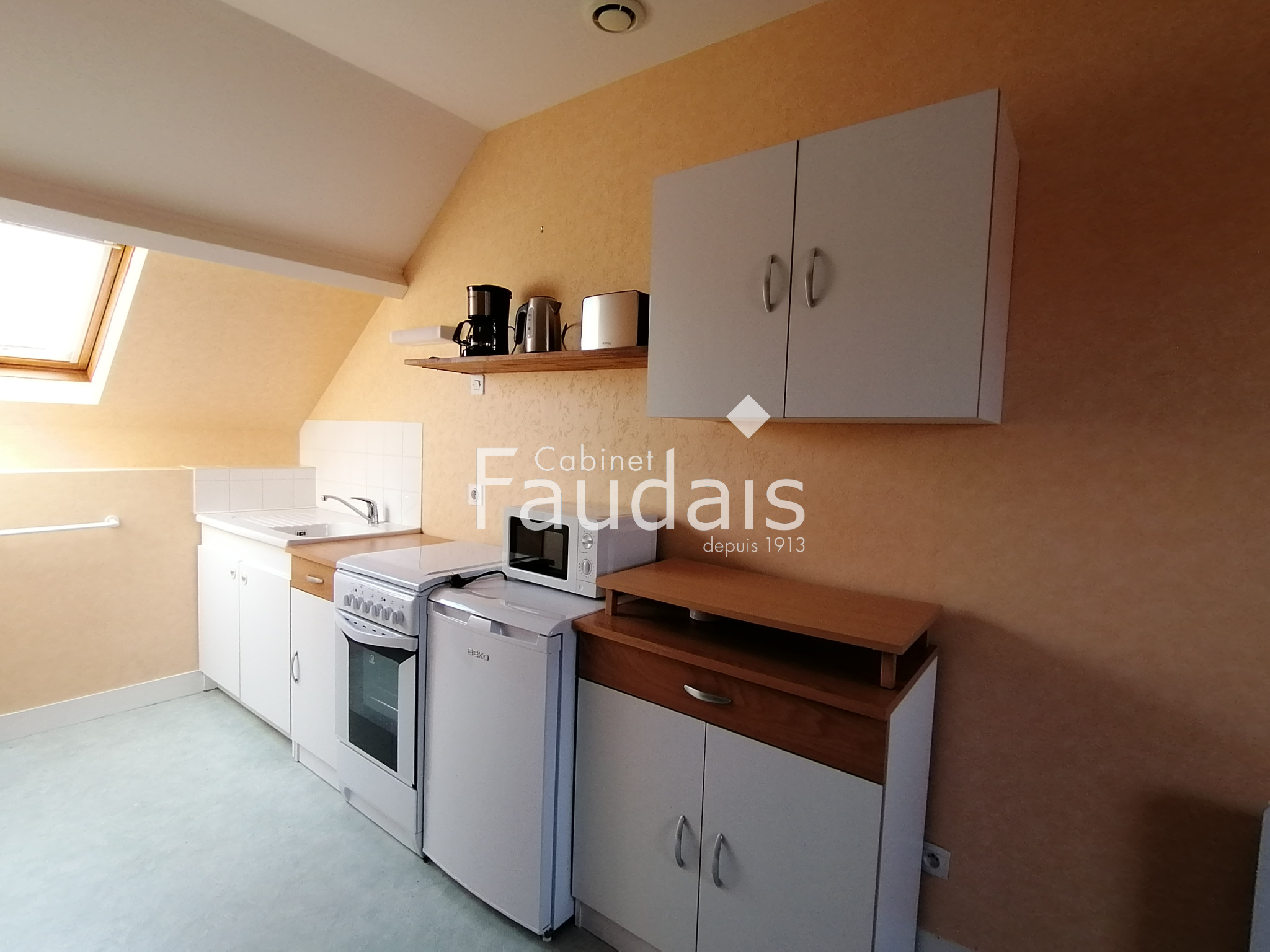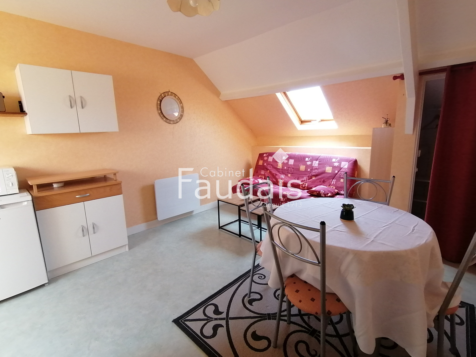 Grandcamp-Maisy (14450)Studio meublé centre GRANDCMAP MAISY comprenant une pièce principale avec coin cuisine et salle d'eau/WC.