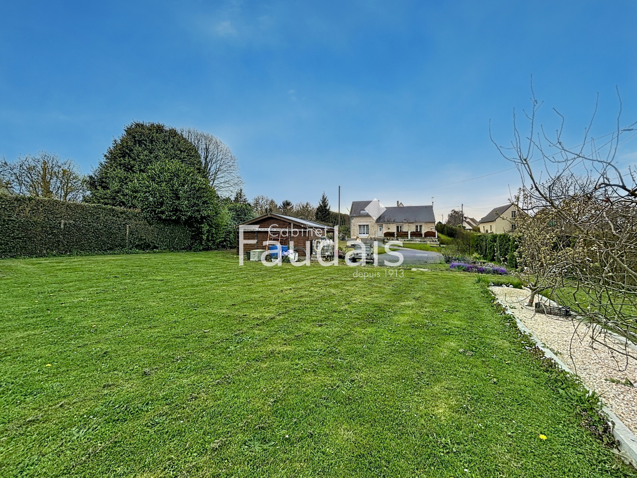 À l’extérieur, vous profiterez d’une terrasse et d’un grand terrain clos d’environ 2 000 m², idéal pour les enfants et les animaux. Un grand chalet permet également de stocker du matériel.