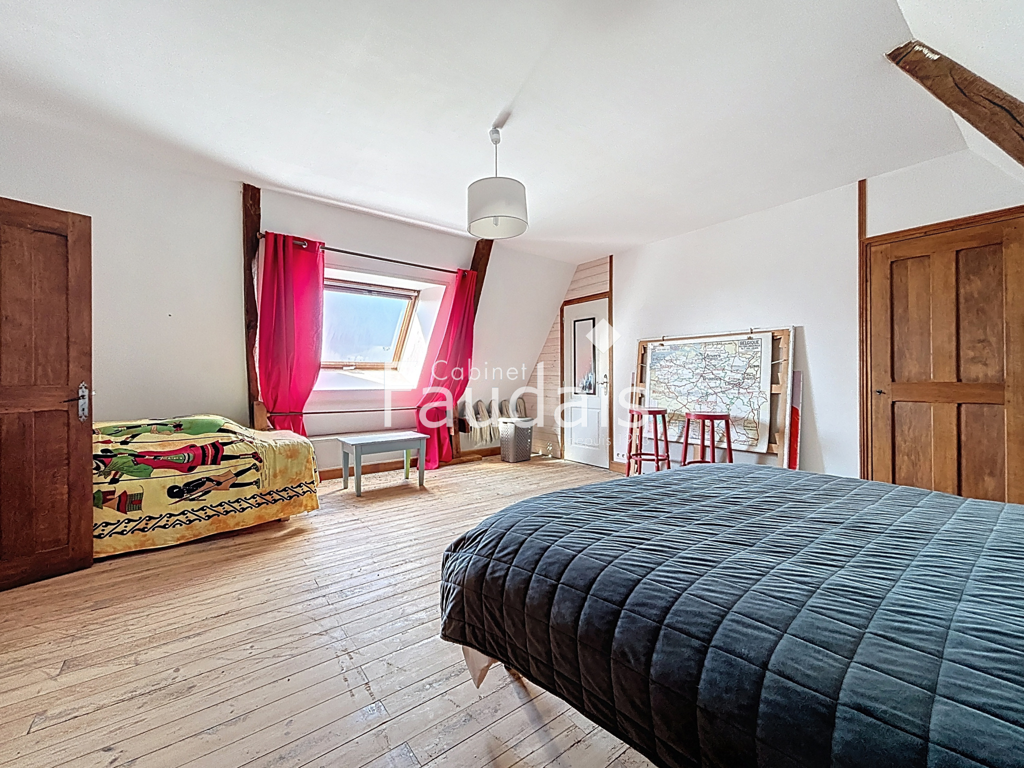 La maison principale d’environ 200 m², pleine de caractère, se déploie sur trois niveaux et séduira les amateurs d’authenticité : parquet, poutres apparentes et belles hauteurs sous plafond.