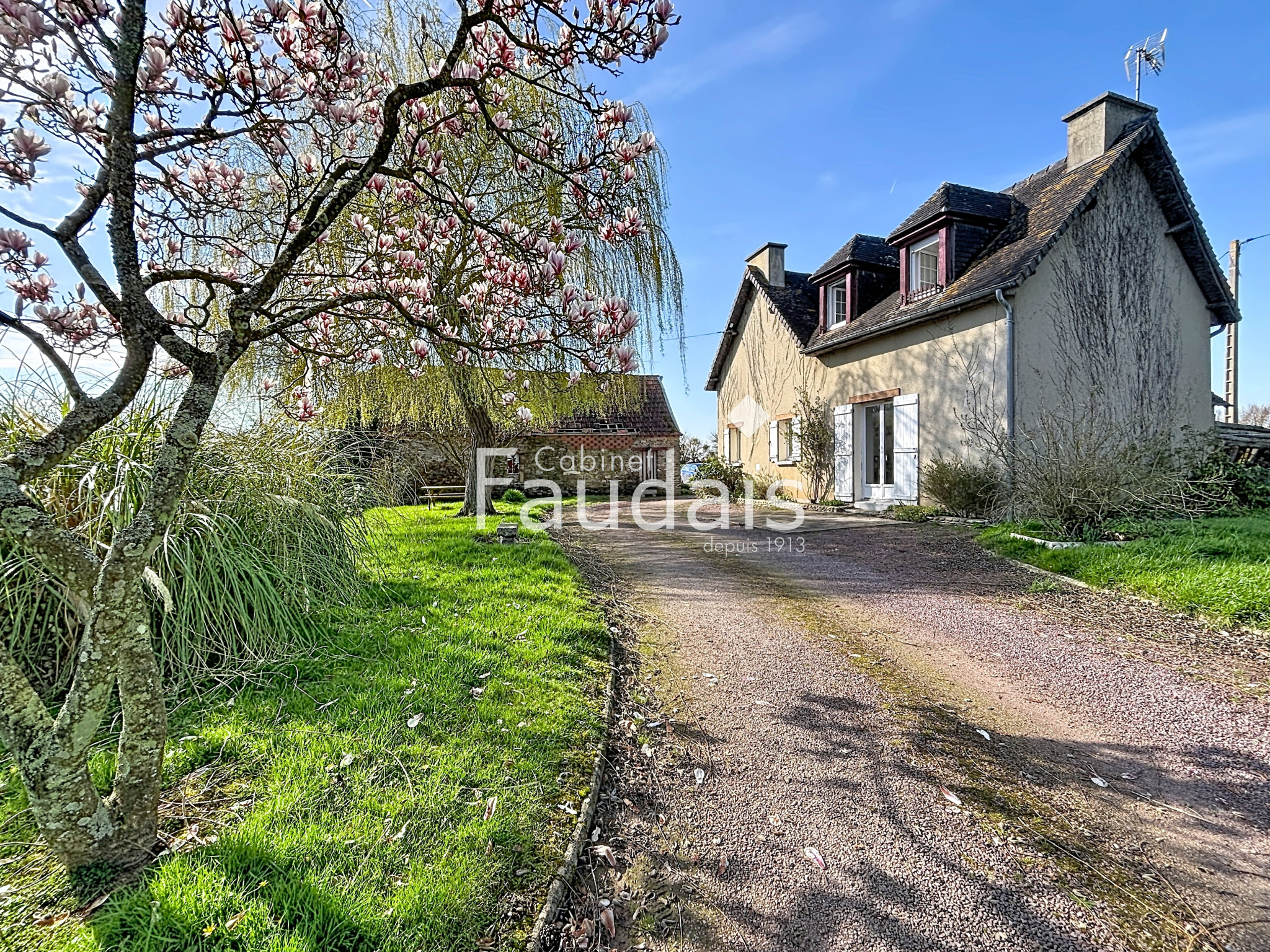 Un double garage et une dépendance complètent l’ensemble.