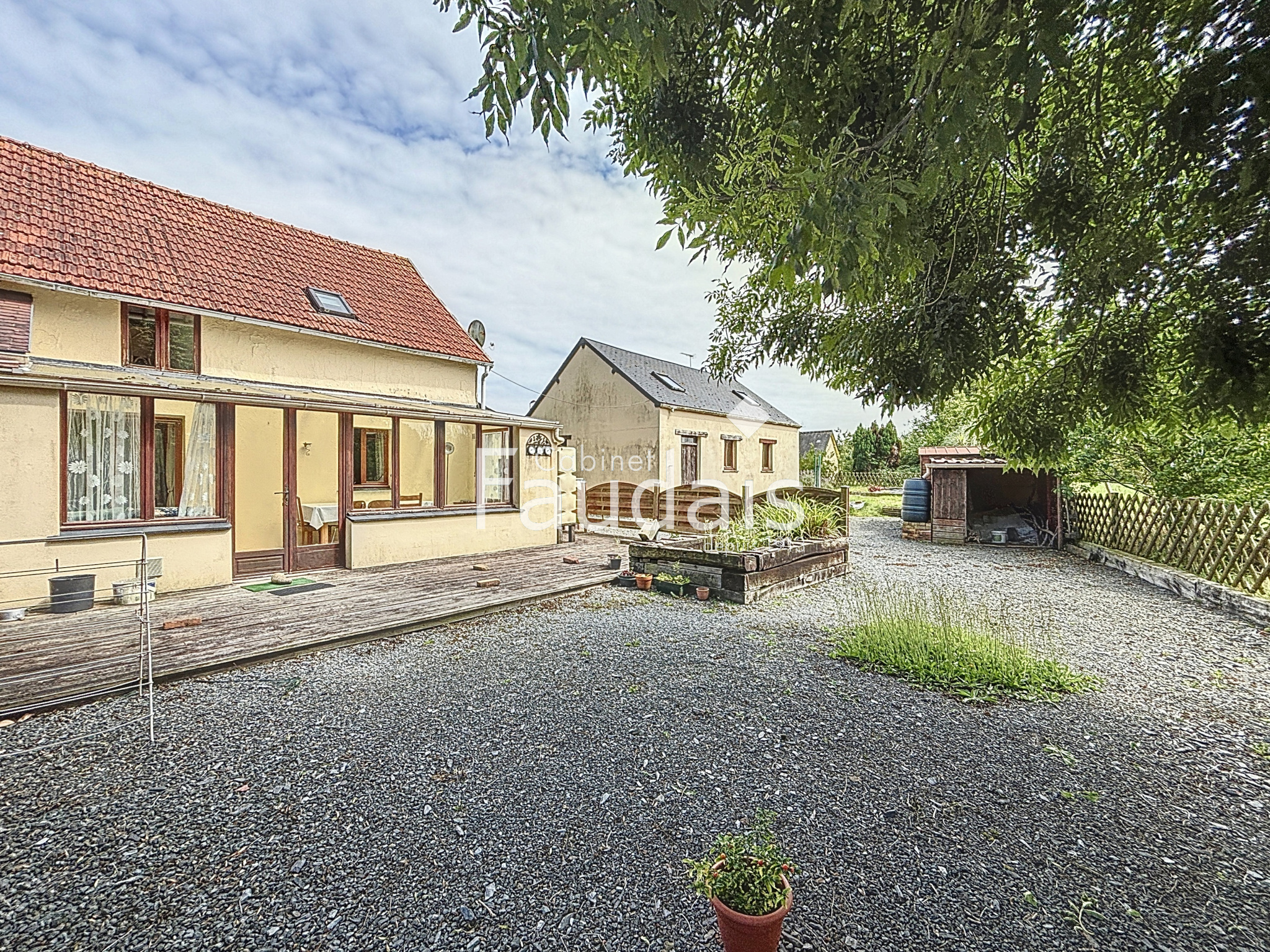 Lison (14330)Située à LISON, le CABINET FAUDAIS vous présente une maison de campagne mitoyenne d'un côté. A seulement quelques minutes de la gare, le bien dispose au rez de chaussée d'un séjour ouvert sur cuisine aménagée avec insert bois, salon, bureau, véranda, buanderie et wc avec lave mains. A l'étage, un palier desservant deux chambres, une salle de bains avec wc et un dressing/bureau.