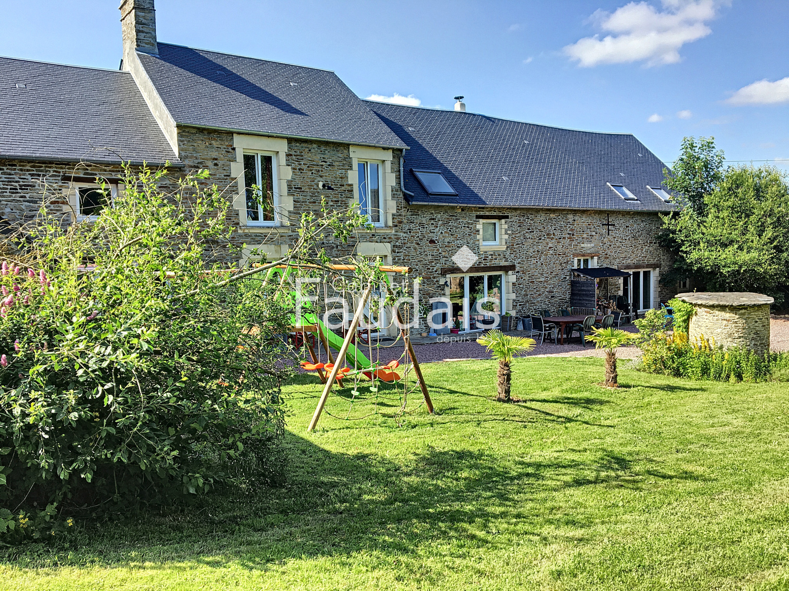 De belles dépendances en pierre à usage de garages et ateliers complètent ce bien. L'ensemble sur un terrain clos et arboré de 1874m² avec 2 puits.