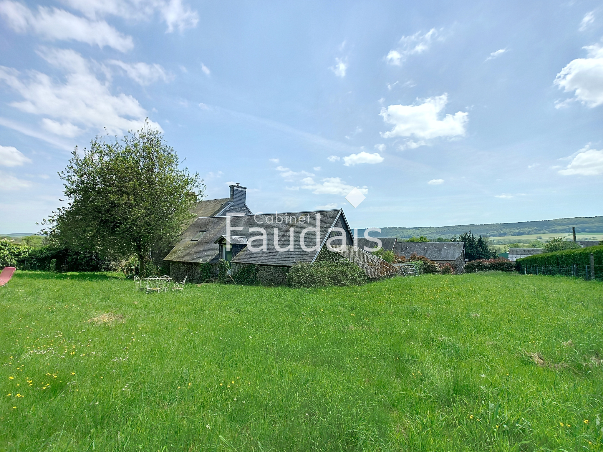 L'ensemble sur un terrain de 7079 m² comprenant jardin, bois et herbage avec puits.