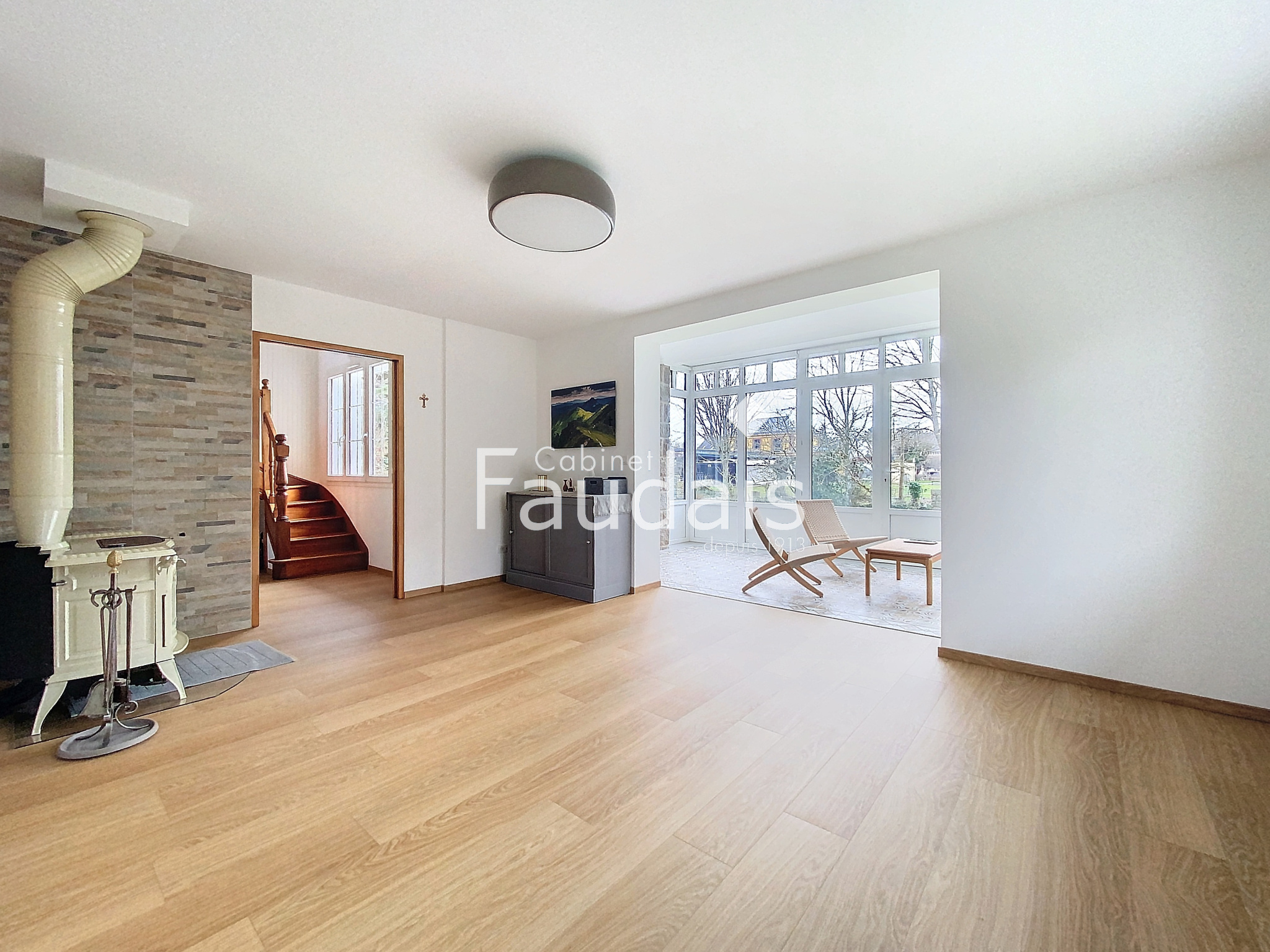Dès l’entrée, vous serez séduit par les volumes et la lumière naturelle omniprésente. Le rez-de-chaussée s’organise autour d’un bel espace de vie, comprenant une cuisine ouverte, aménagée et équipée, un salon chaleureux agrémenté d’un poêle à bois en fonte émaillée, et une véranda inondée de lumière, idéale pour profiter du jardin en toutes saisons. Le couloir distribue la partie nuit de plain-pied avec une véritable suite parentale ouvrant sur le jardin, dotée d’un dressing sur mesure et d’une salle d’eau élégante avec double vasque, douche à l’italienne et WC. Une seconde chambre, un WC indépendant ainsi qu’une buanderie complètent ce niveau.
