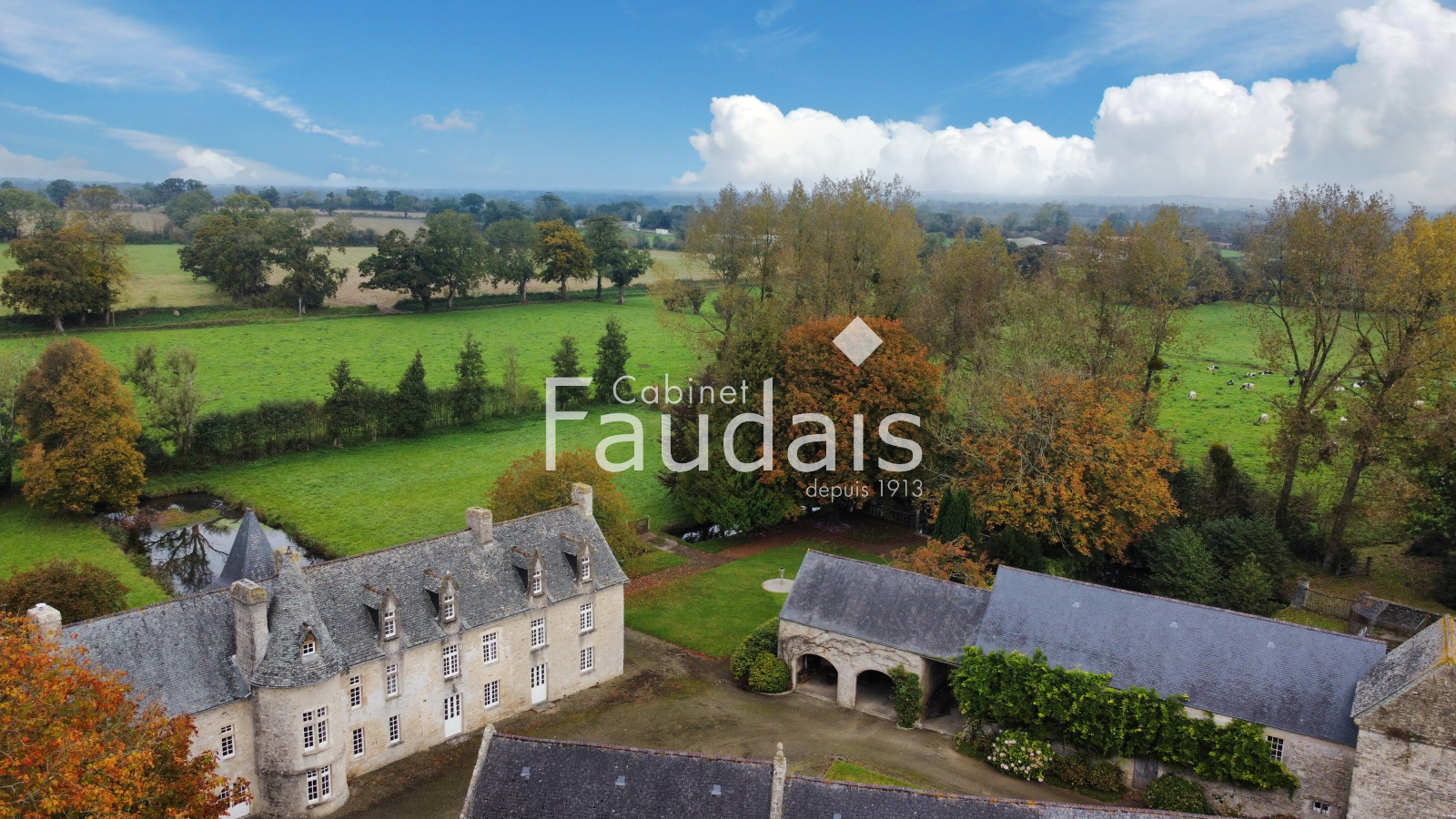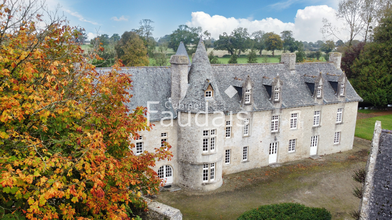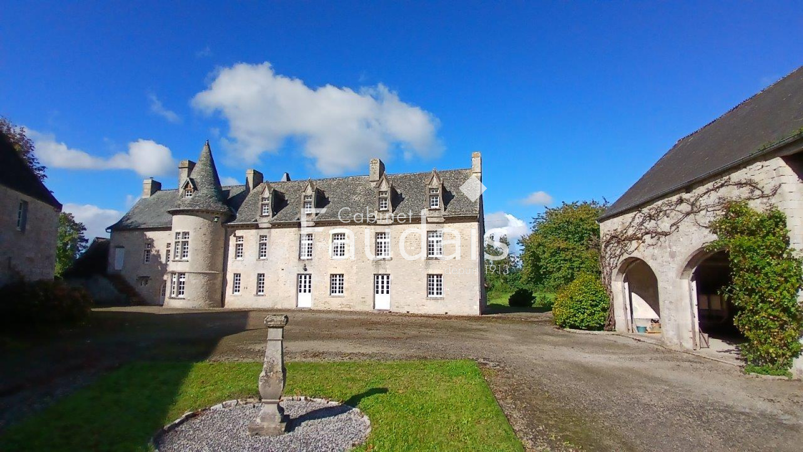 Picauville (50360)Le Cabinet-FAUDAIS vous présente cette Belle propriété de caractère sise dans un petit village pittoresque du Plain-Cotentin en un endroit calme et champêtre, proche de Ste-Mère-Eglise et de la plage d'Utah-Beach. On y accède par 2 entrées principales, l'une latérale avec avenue donnant sur un porche, l'autre par un haut portail en fer forgé s'ouvrant sur une avenue menant à la cour d'honneur bordée de 2 corps de bâtiments en éventail et fermée par l'élégant logis principal faisant face, datant des 17ème et 18ème.