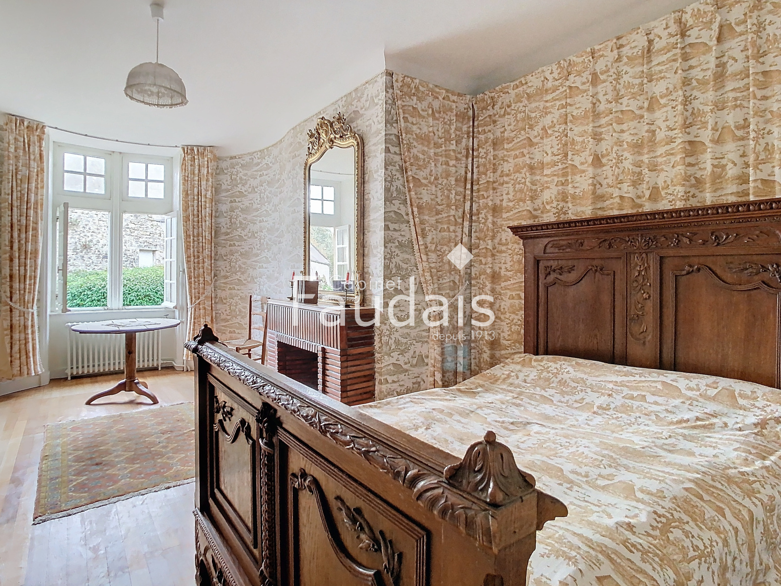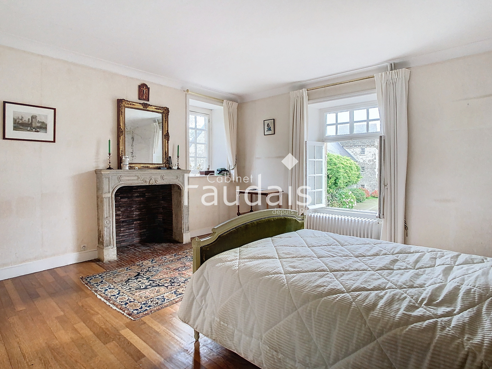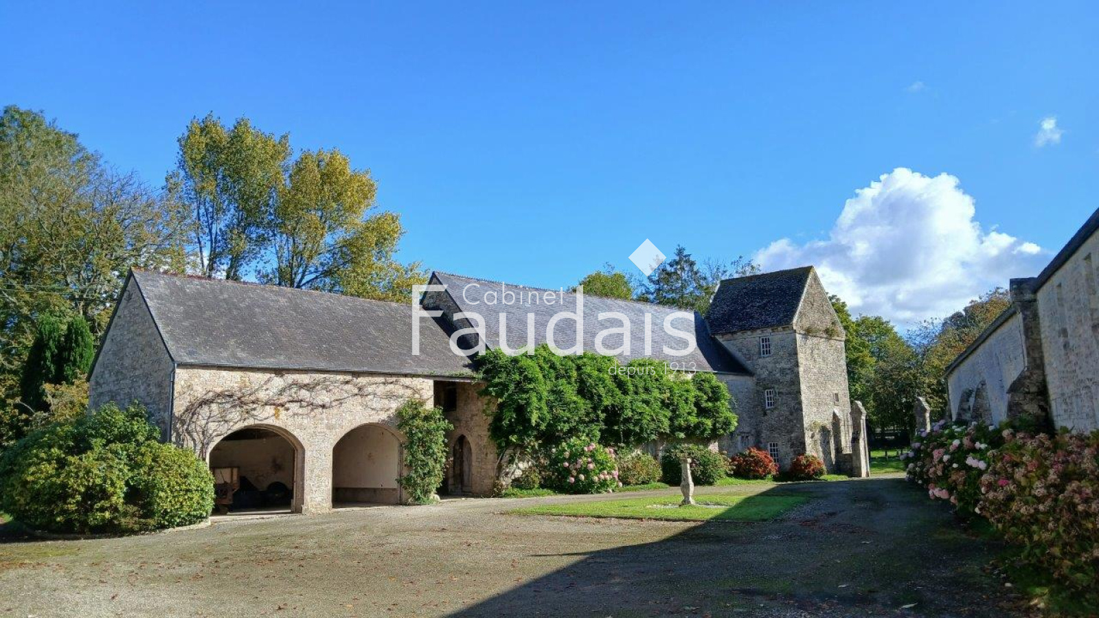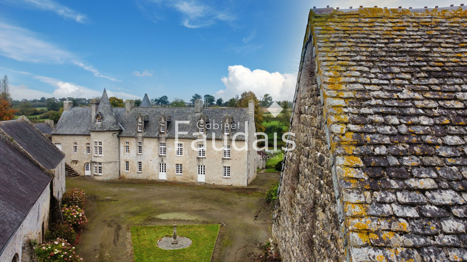 Picauville (50360)Le Cabinet-FAUDAIS vous présente cette Belle propriété de caractère sise dans un petit village pittoresque du Plain-Cotentin en un endroit calme et champêtre, proche de Ste-Mère-Eglise et de la plage d'Utah-Beach. On y accède par 2 entrées principales, l'une latérale avec avenue donnant sur un porche, l'autre par un haut portail en fer forgé s'ouvrant sur une avenue menant à la cour d'honneur bordée de 2 corps de bâtiments en éventail et fermée par l'élégant logis principal faisant face, datant des 17ème et 18ème.