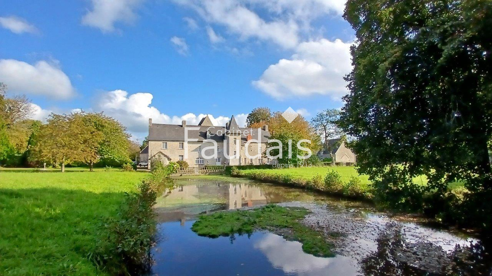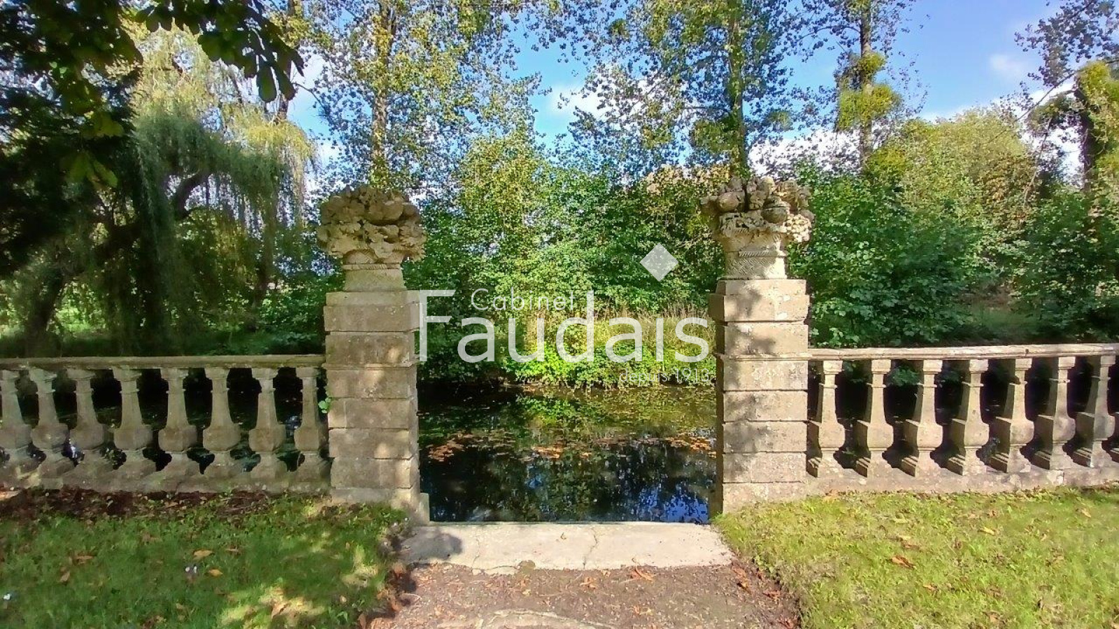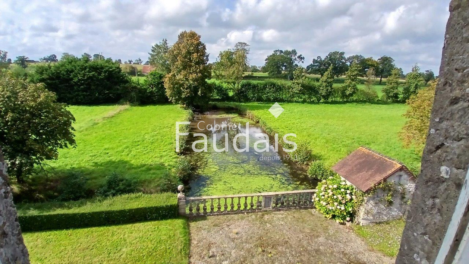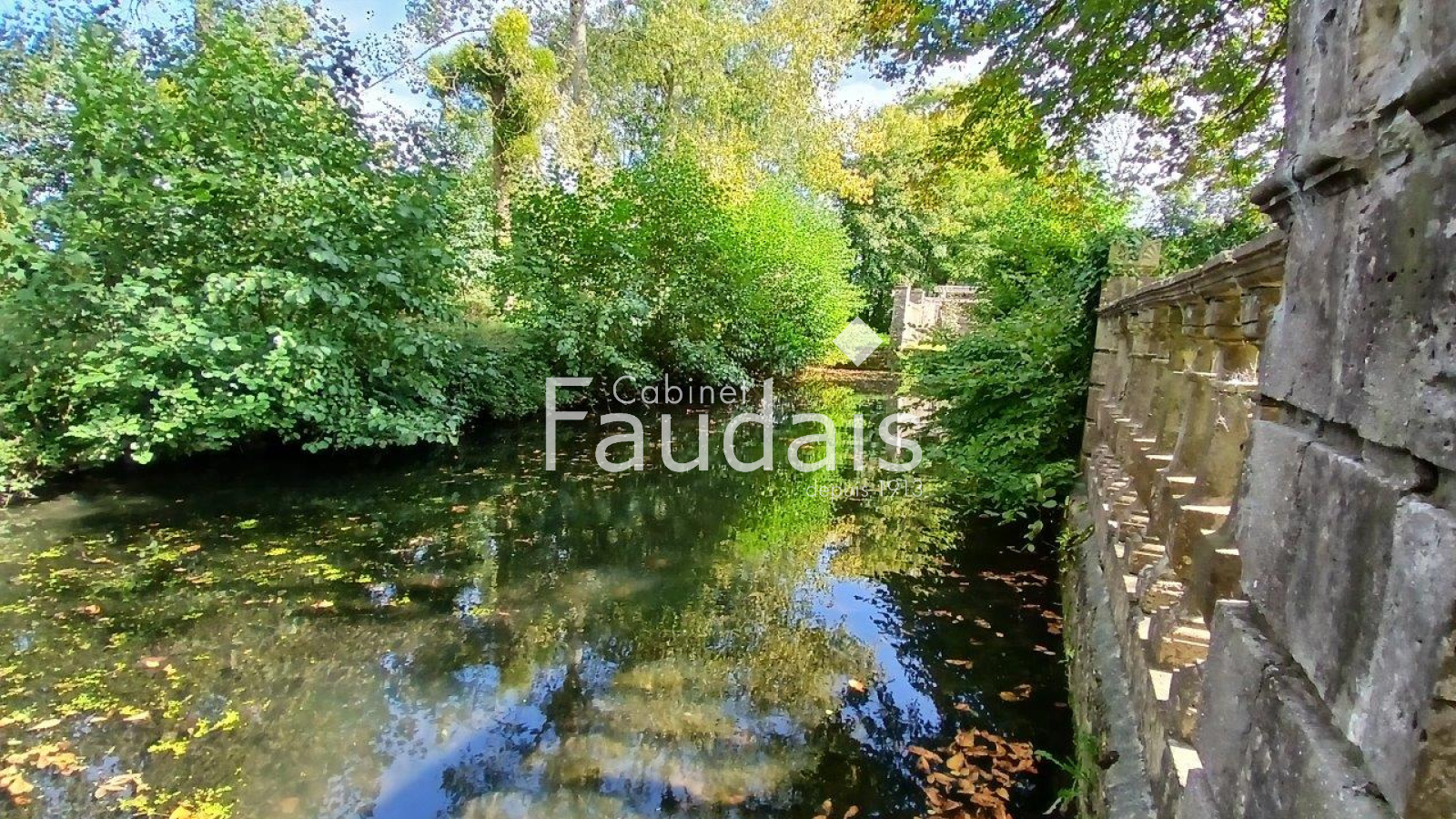La propriété est agrémentée de jardins, anciens potagers, parc avec bassin et douve alimentés par petite rivière en eau vive traversant sur la longueur les ~11ha de prairies attachés à celle-ci. Possibilité d'acquérir une surface foncière supplémentaire d'~7,50 ha.