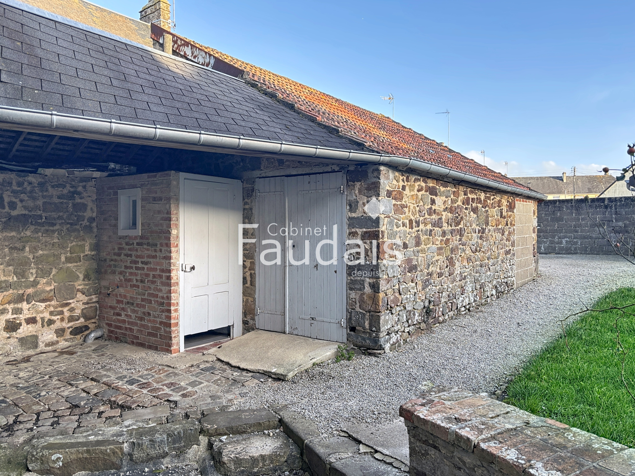 La Haye-du-Puits (50250)Située à 250 m du centre ville le CABINET FAUDAIS vous présente en EXCLUSIVITÉ cette grande maison offrant une vie de plain-pied possible et composée au rdc : Entrée, cuisine semi équipée ouverte sur séjour / salon, 1 chambre, salle d'eau, wc et lingerie.