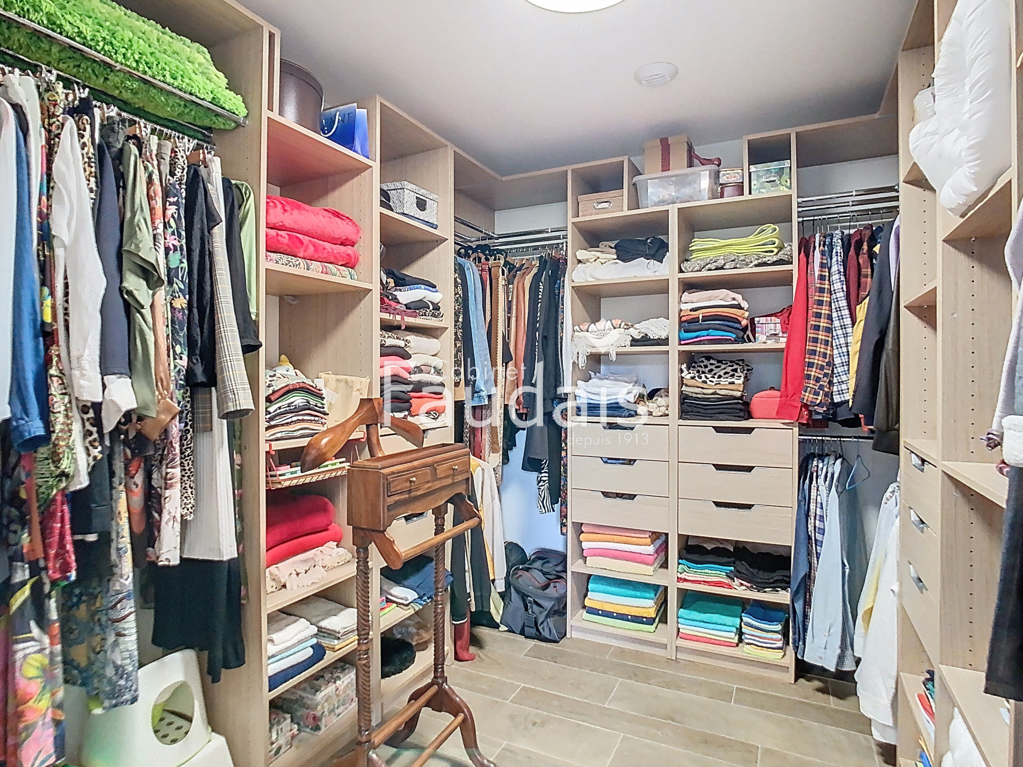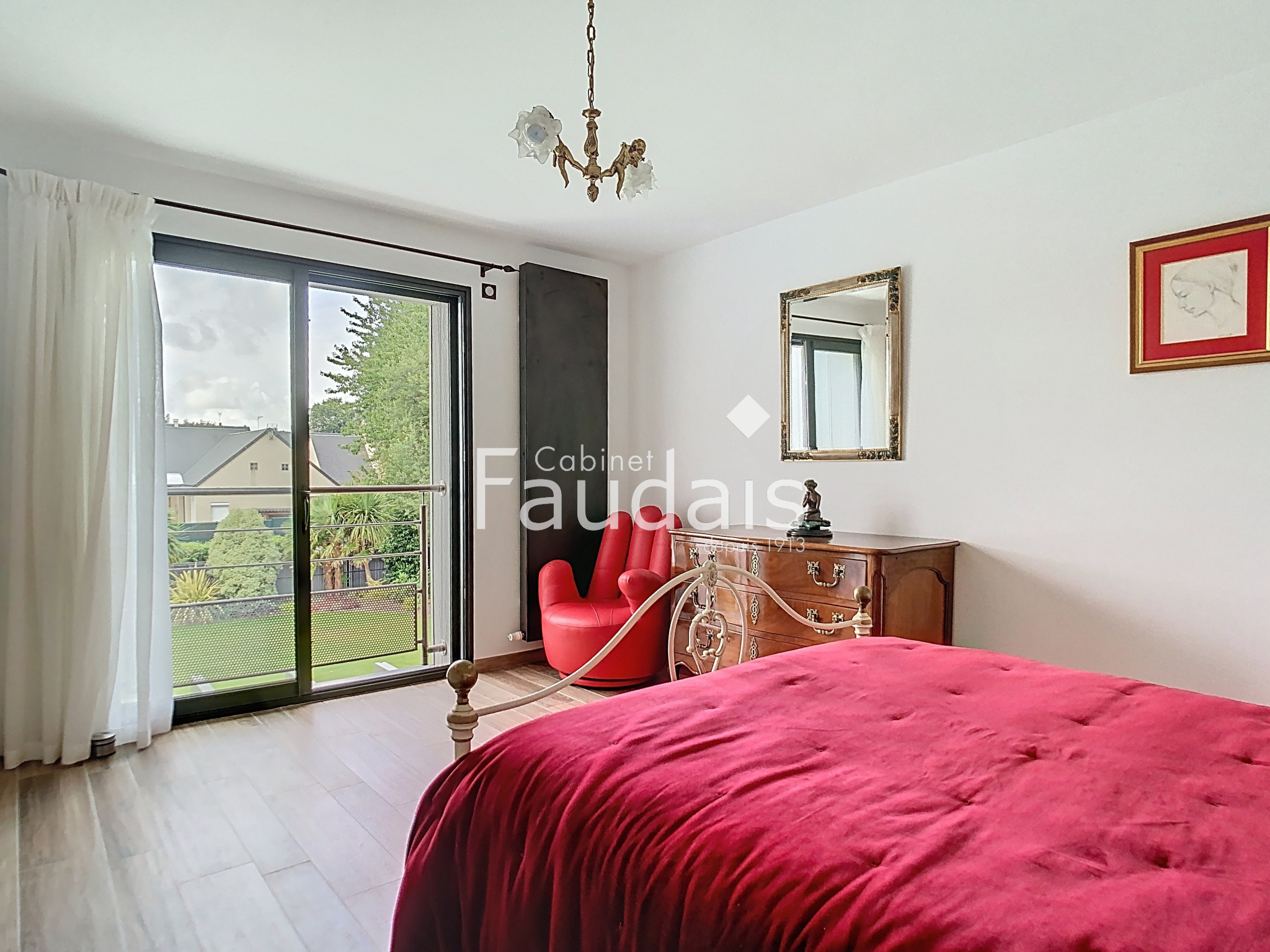 Etage: belle pièce palière desservant deux grandes chambres, salle de bain (baignoire, douche italienne et double vasque) et wc. Grenier au dessus.