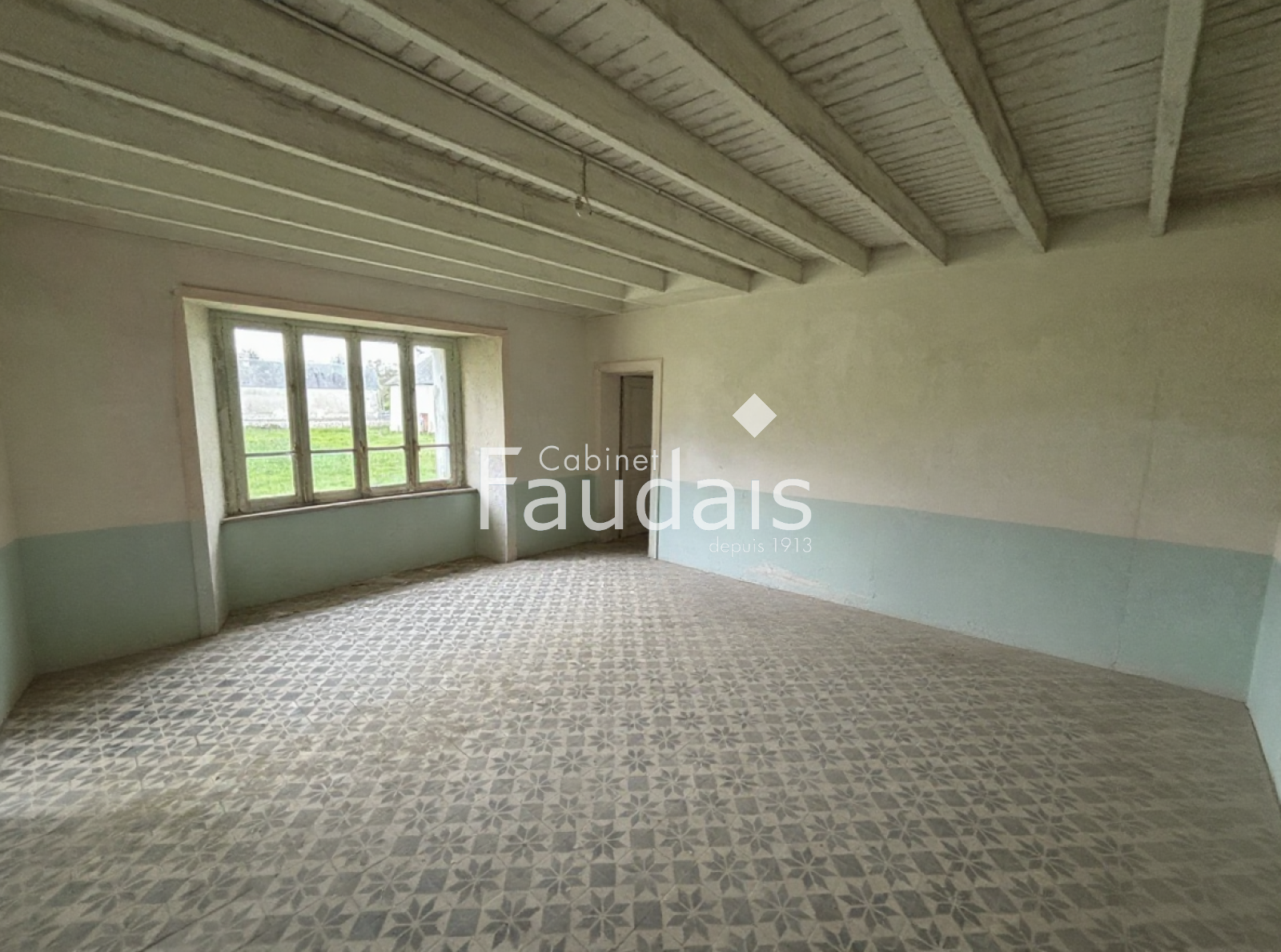 Développant environ 200 m² habitables, cette propriété de caractère se compose au rez-de-chaussée de quatre grandes pièces réparties autour d’un escalier central, conservant toute l’authenticité et le charme de l’ancien.