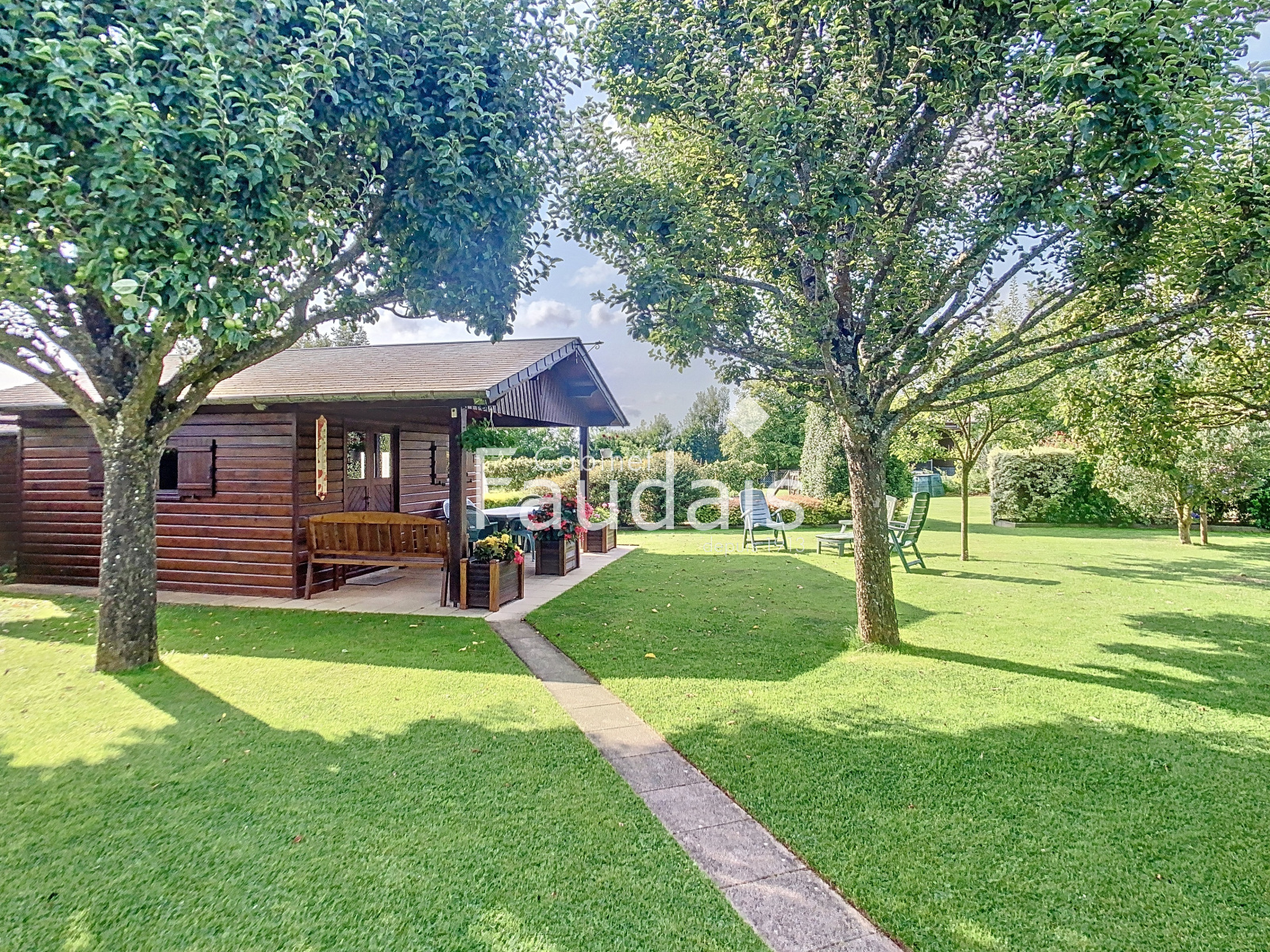 Superbe jardin clos, arboré, un chalet de loisir en trés bon état ou les enfants partageront des moments complices, un potager avec serre en bon état.