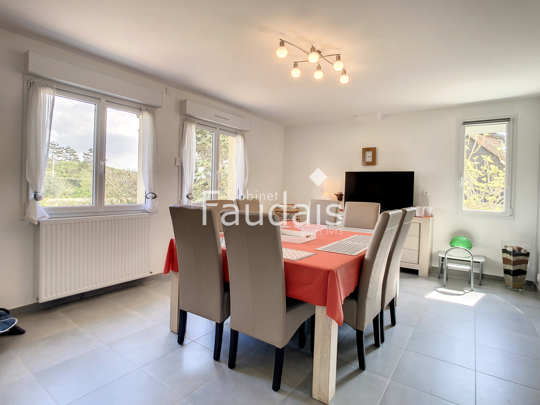 La cuisine équipée est idéale pour préparer de délicieux repas en famille ou entre amis, tandis que le séjour et le salon offrent des espaces chaleureux pour se détendre et se divertir. Une salle d'eau moderne et deux toilettes complètent l'agencement pratique de la maison.