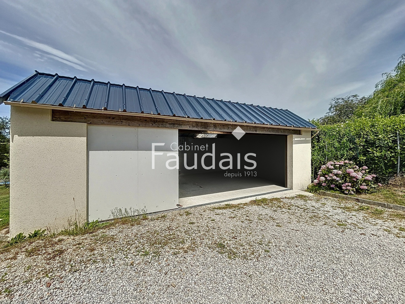Un garage ouvert;