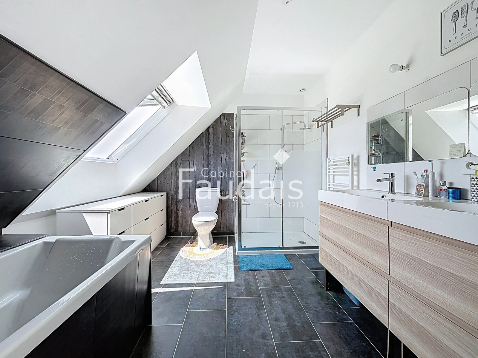Une salle de bains et une salle d’eau;