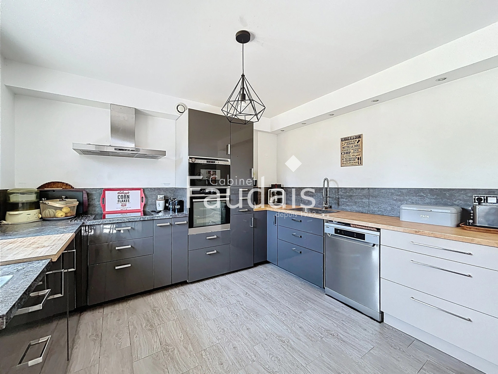 - Une grande cuisine ouverte aménagée et équipée;