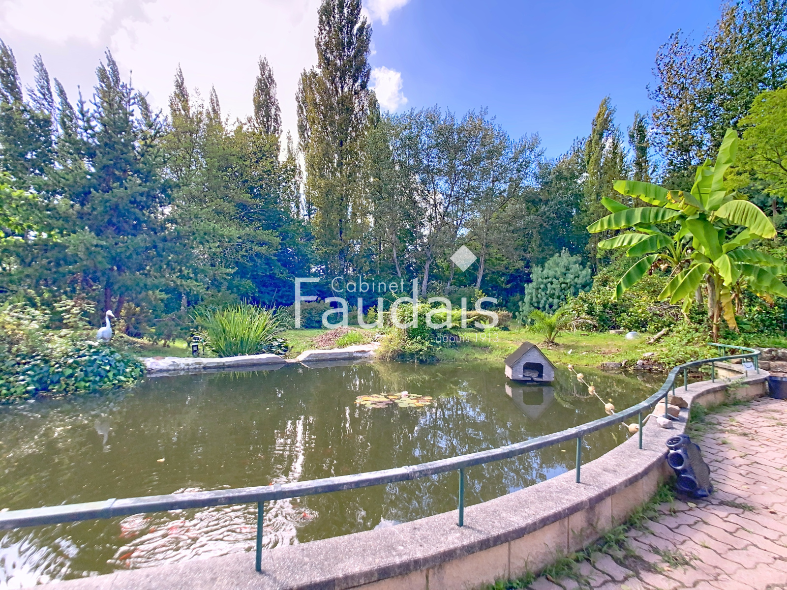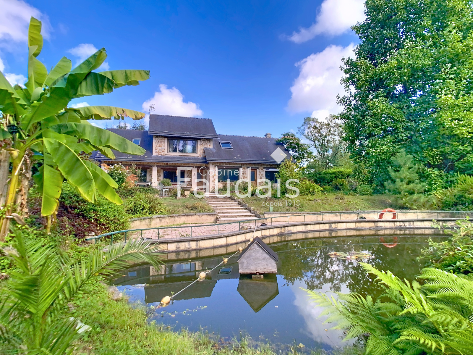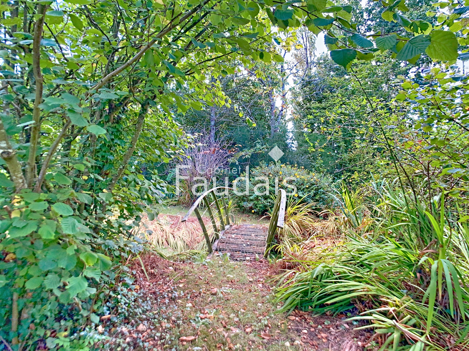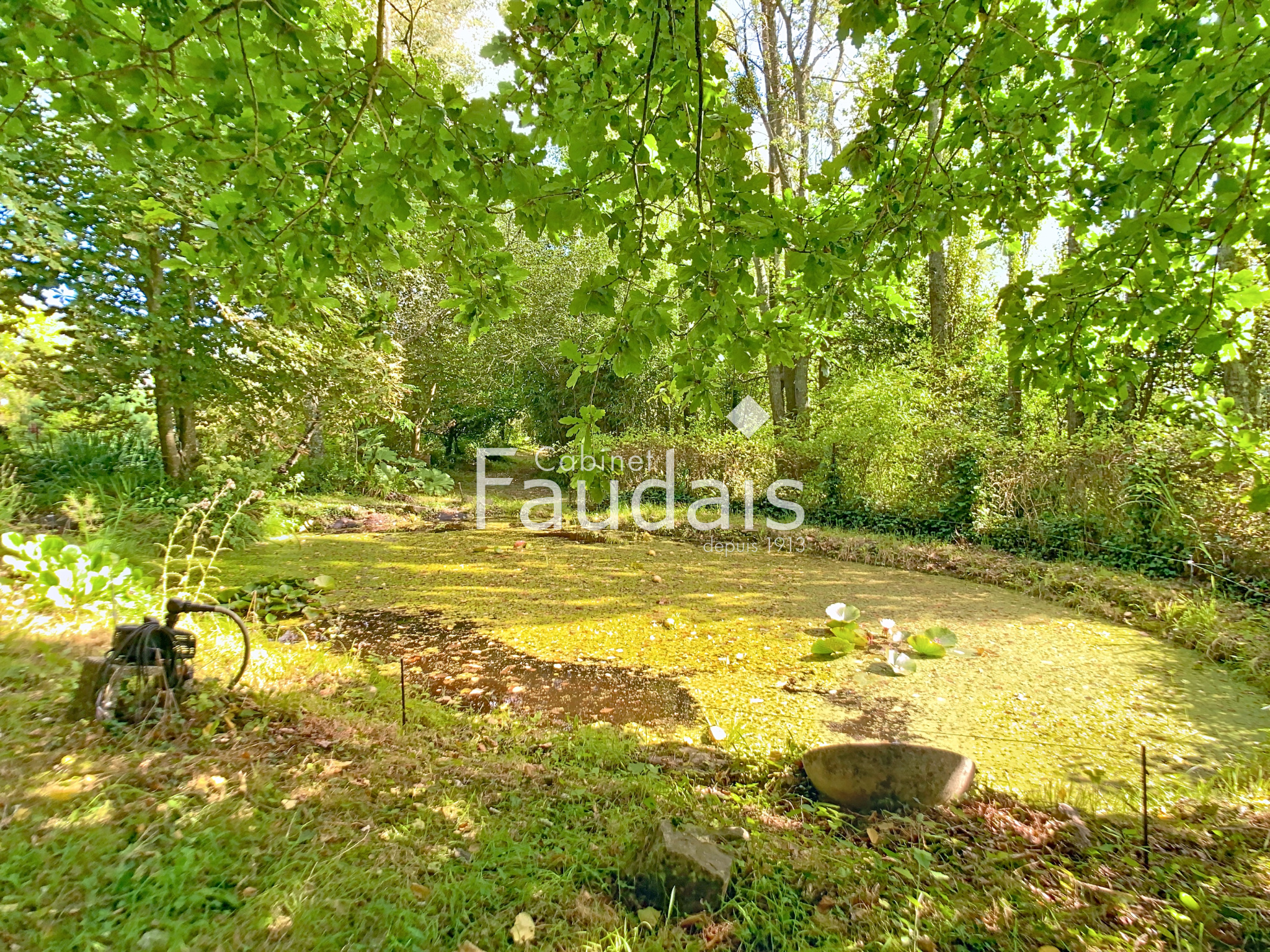 Terrain planté de 11 022 m² avec étangs et ruisseau.