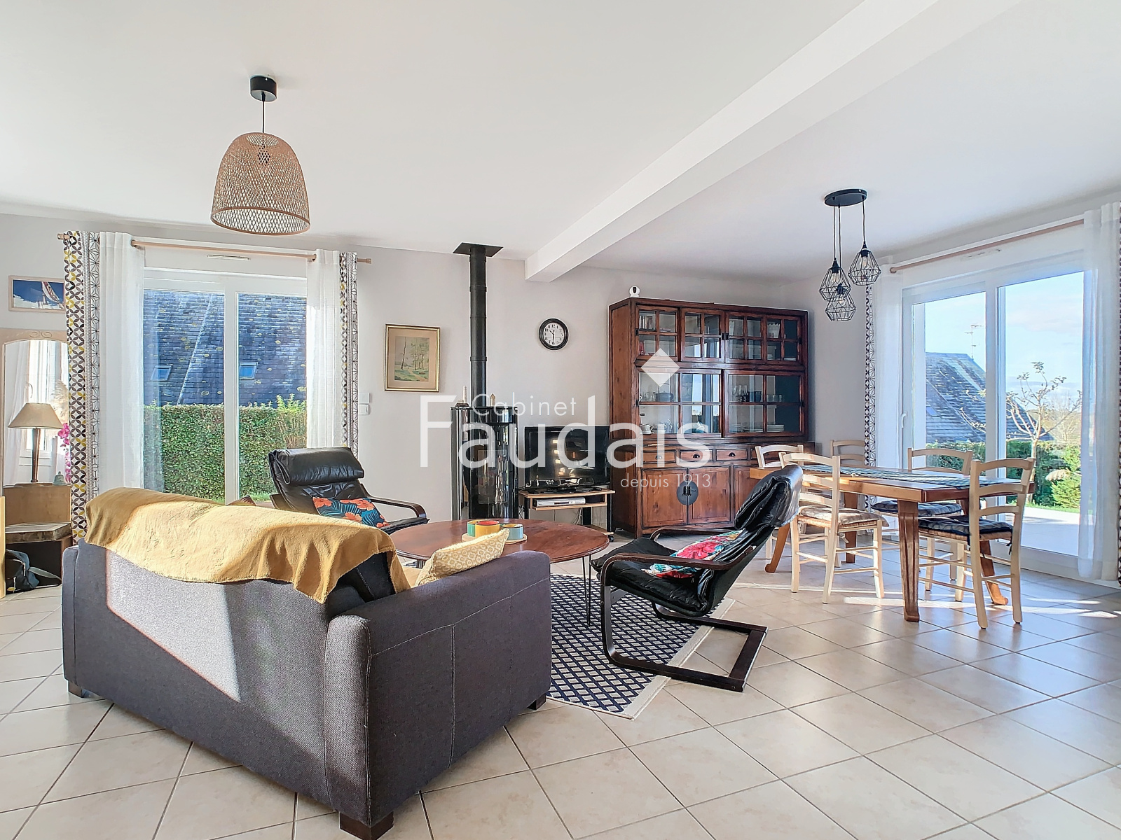 Osmanville (14230)Situé à OSMANVILLE, le CABINET FAUDAIS vous présente un pavillon construit en 2007 bénéficiant d'une vie de plain-pied. Cette maison dispose au rez de chaussée d'un salon avec poêle à granulés, cuisine américaine aménagée et équipée, chambre, salle d'eau et wc. A l'étage, un couloir desservant quatre chambres, salle de bains et wc.
