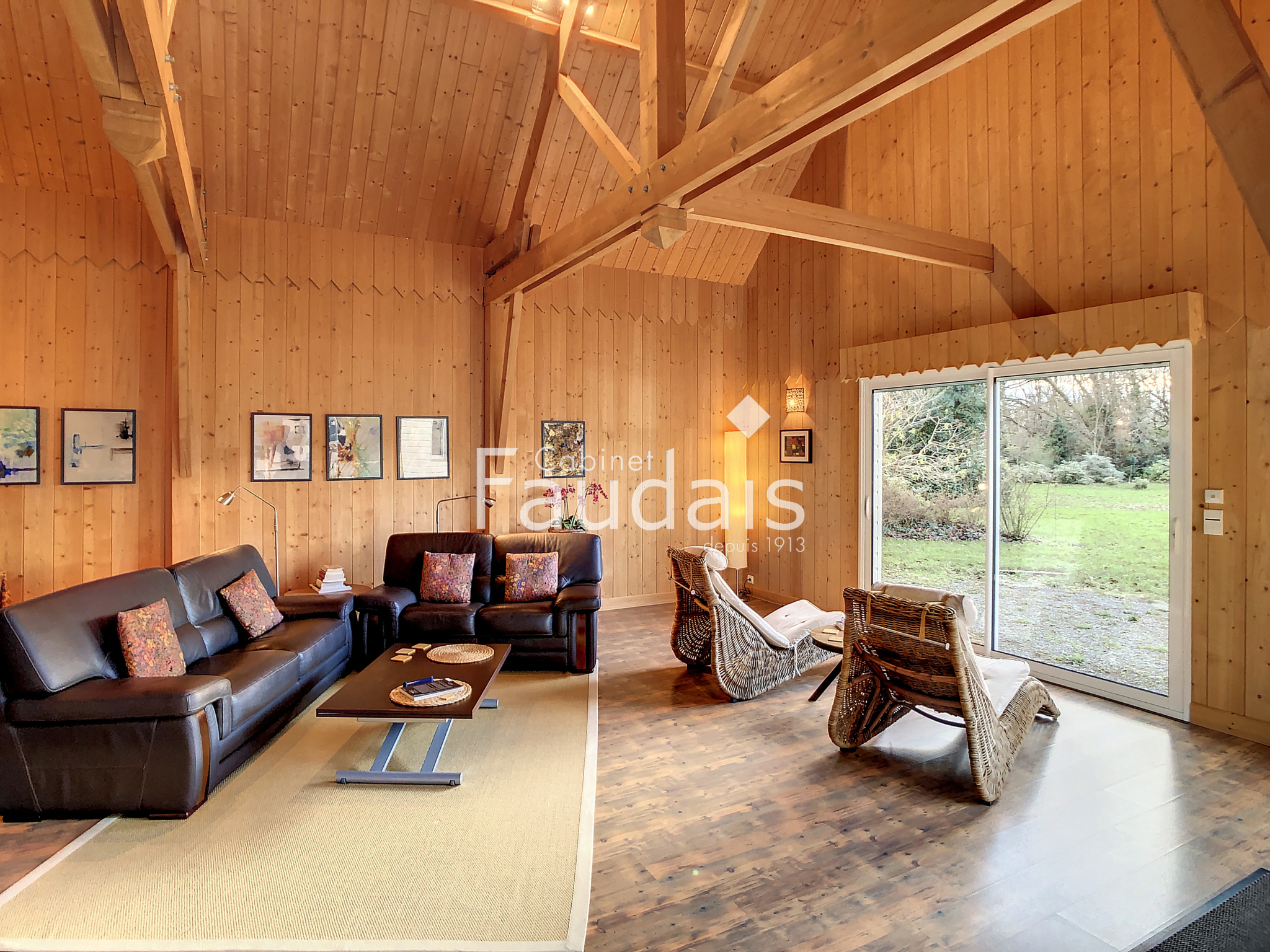 Pirou (50770)A Pirou, le Cabinet Faudais vous présente cette maison à ossature bois en trés bon état avec vie de plain-pied. Les grandes baies vitrée offrent un espace de vie (84 m²) trés lumineux avec une vue imprenable sur le bocage Normand. Votre tranquilité sera assurée par le terrain de 1Ha 16 comprenant un parc entièrement clos autour de la maison (4170 m²), ainsi qu'un verger attenant (7000 m²). Côté technique, la maison a toujours été parfaitement entretenue par des artisans locaux, son isolation trés soignée ainsi que le pôele à bois vous permettront d'importantes économies d'énergie. Un garage double avec portes sectionnelles permet de ranger les vehicules avec un espace de stockage au dessus.Une autre dépendance se trouve sur le terrain. Appelez-nous rapidement !