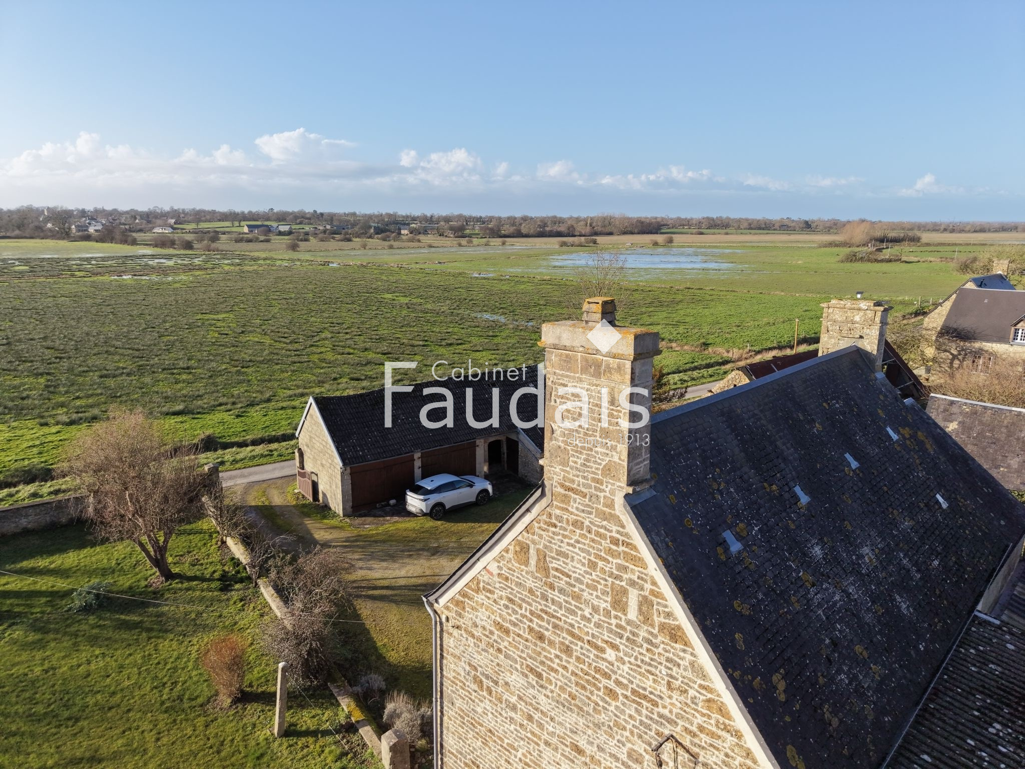 Cretteville (50250)Au pied des marais, le CABINET FAUDAIS vous présente cette charmante maison en pierre à rénover.