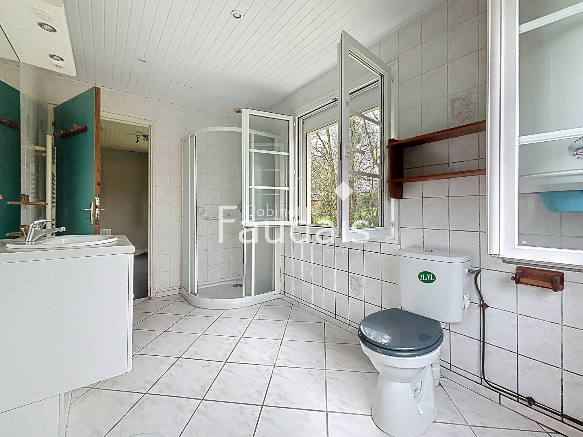 A l'étage : palier desservant 2 chambres dont une de 28 m², salle d'eau / WC.