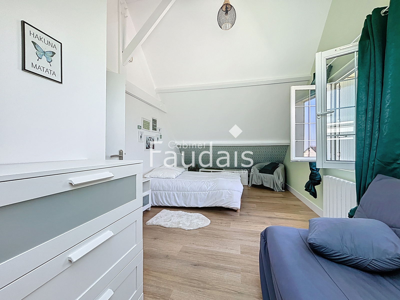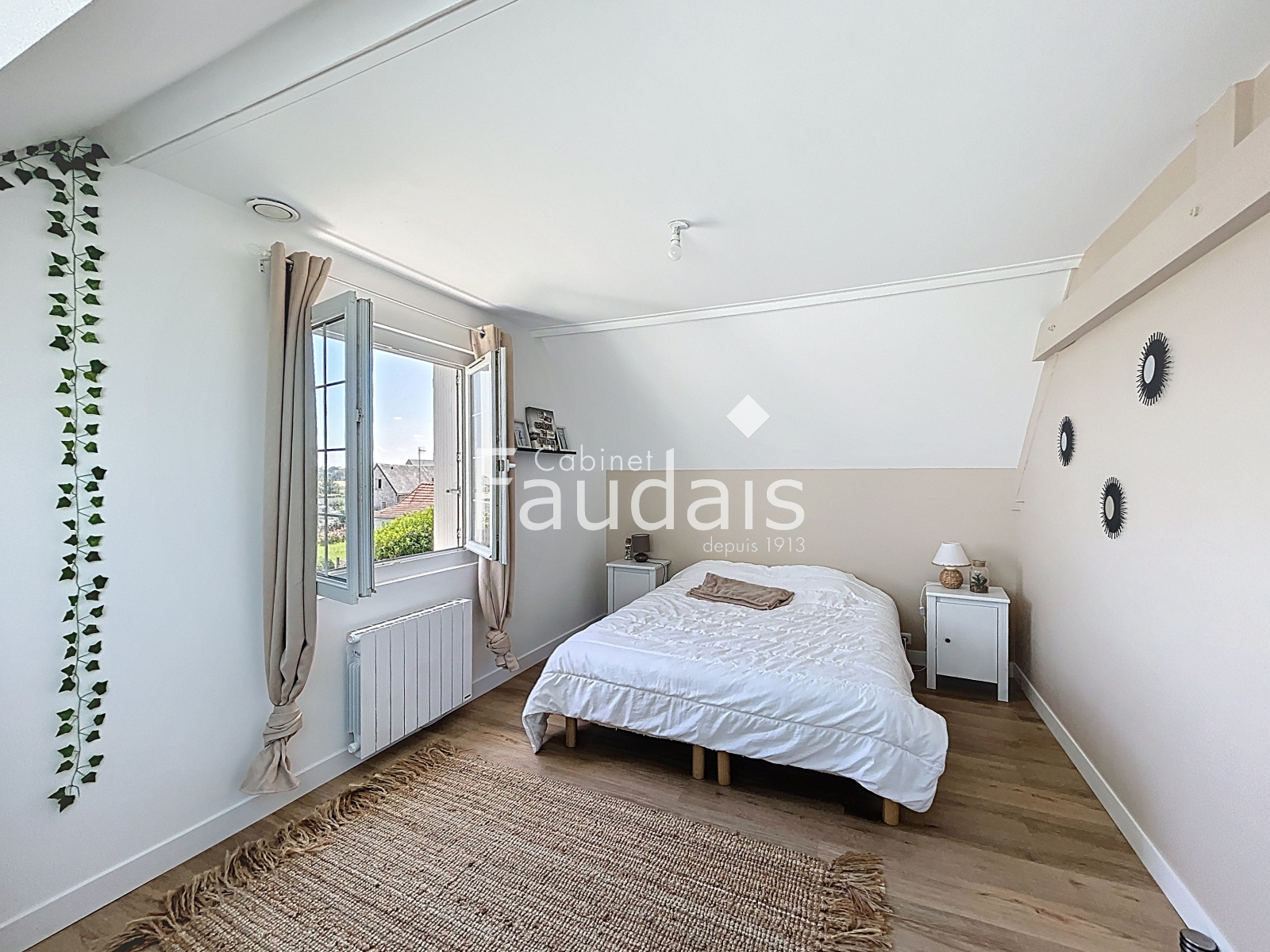 A l'étage un palier dessert 2 belles chambres, une salle d'eau avec toilette et un espace rangement (grenier).