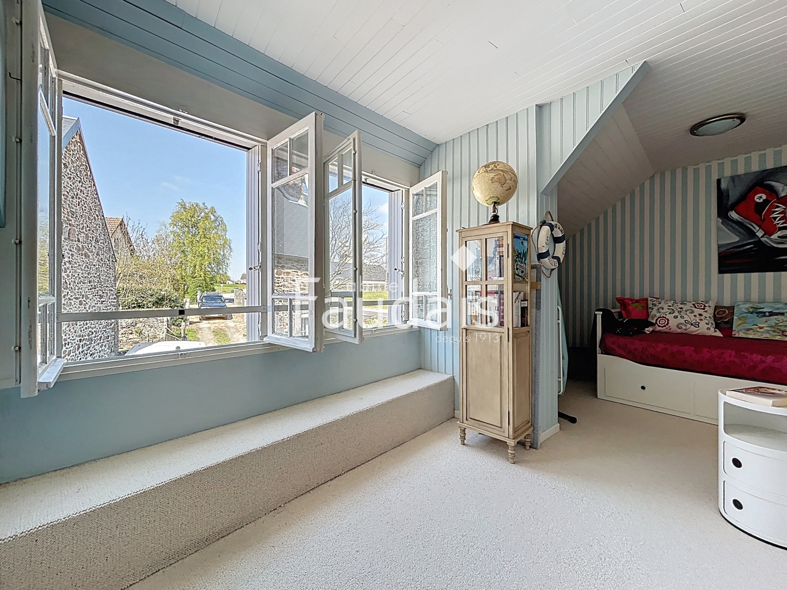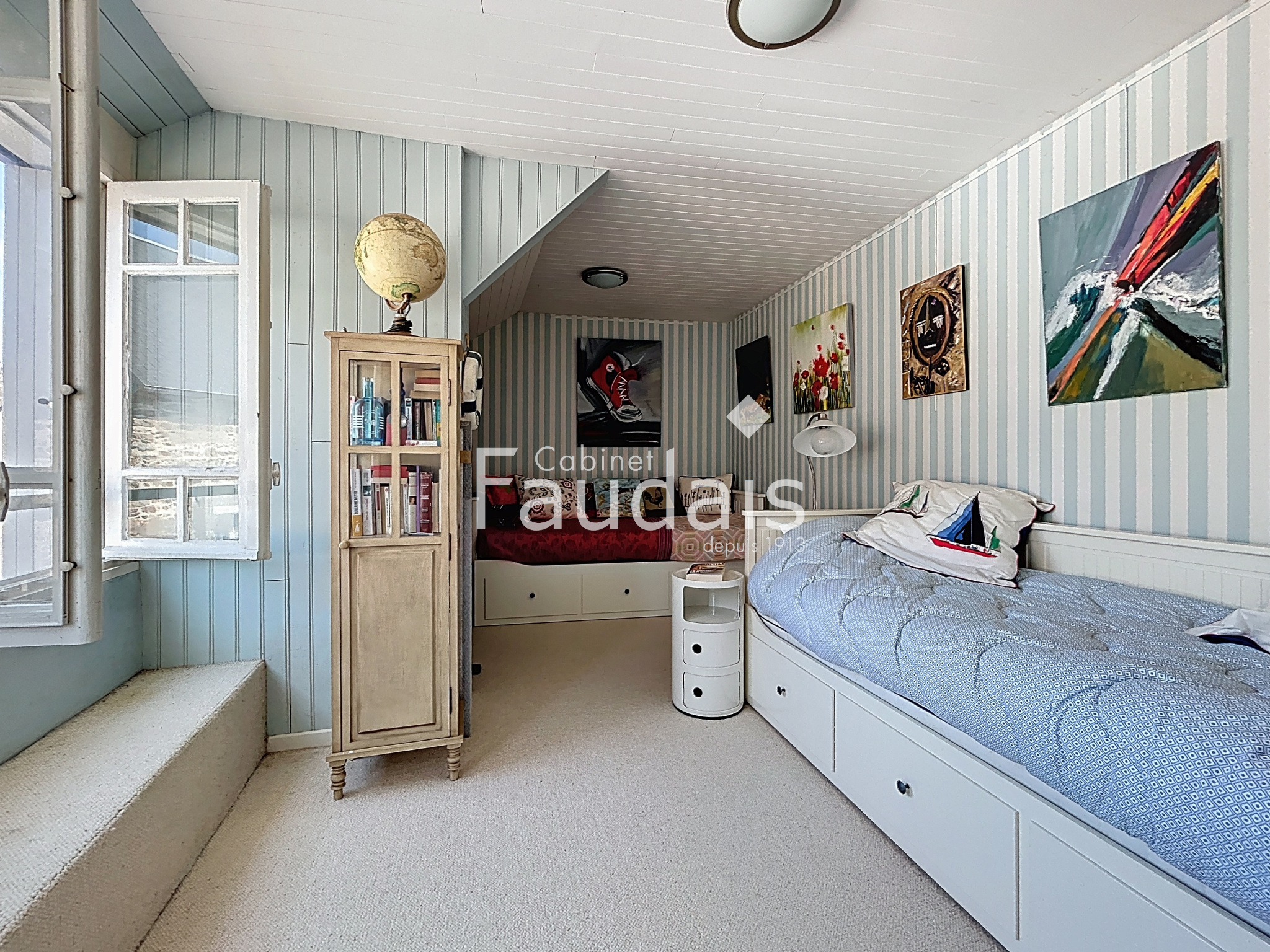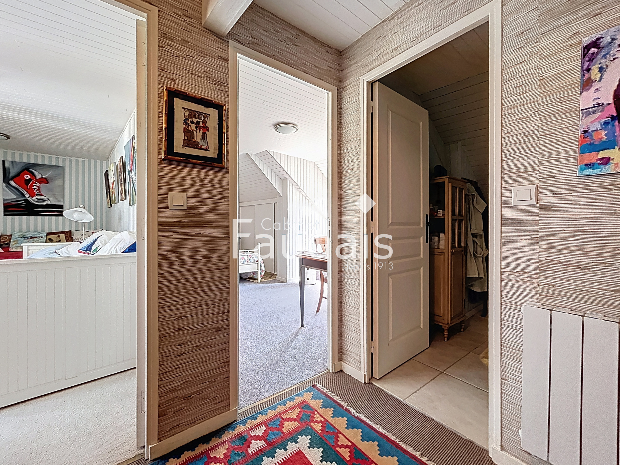 A l'étage un palier dessert deux grandes chambres et une salle d'eau avec WC.