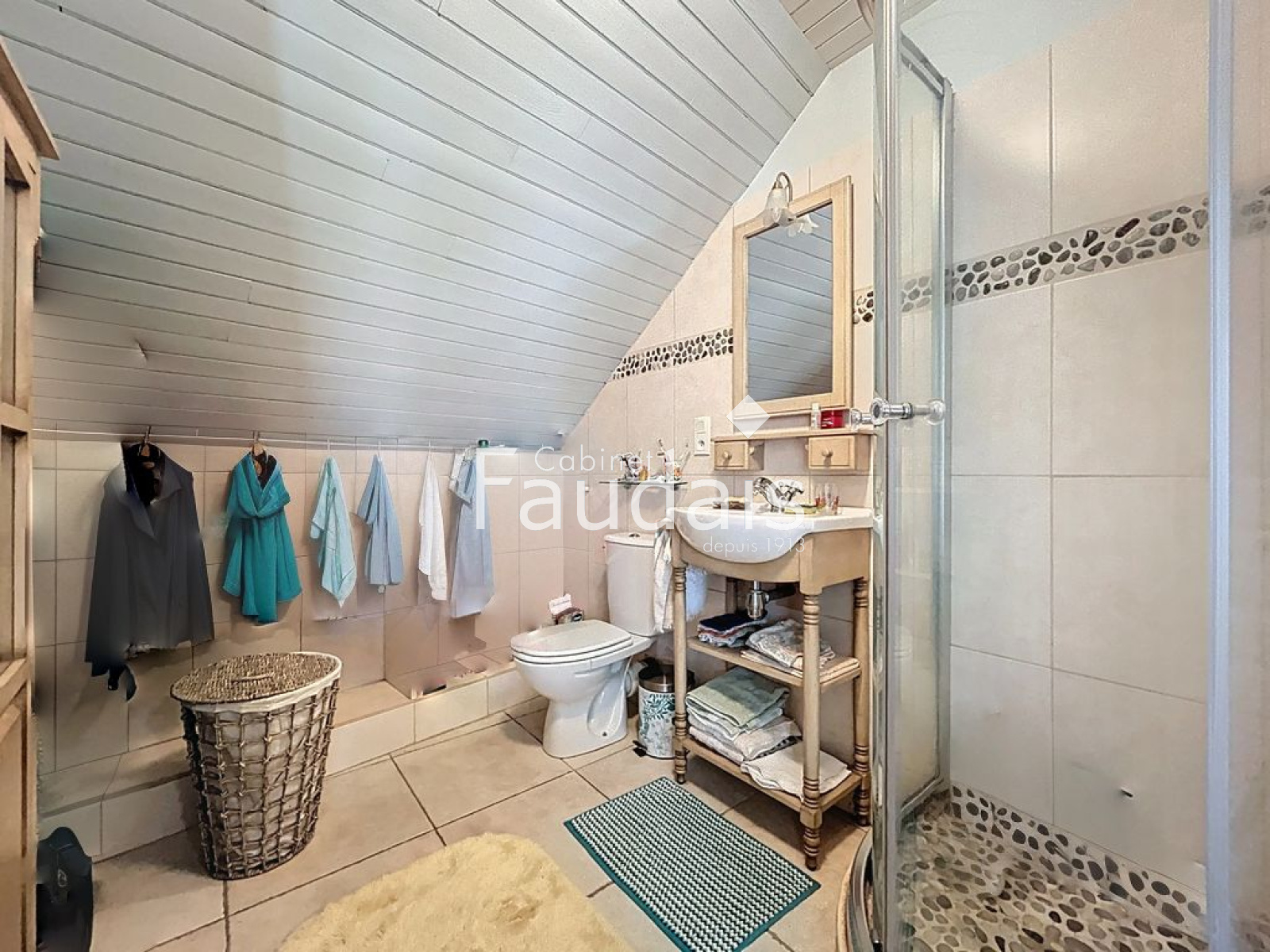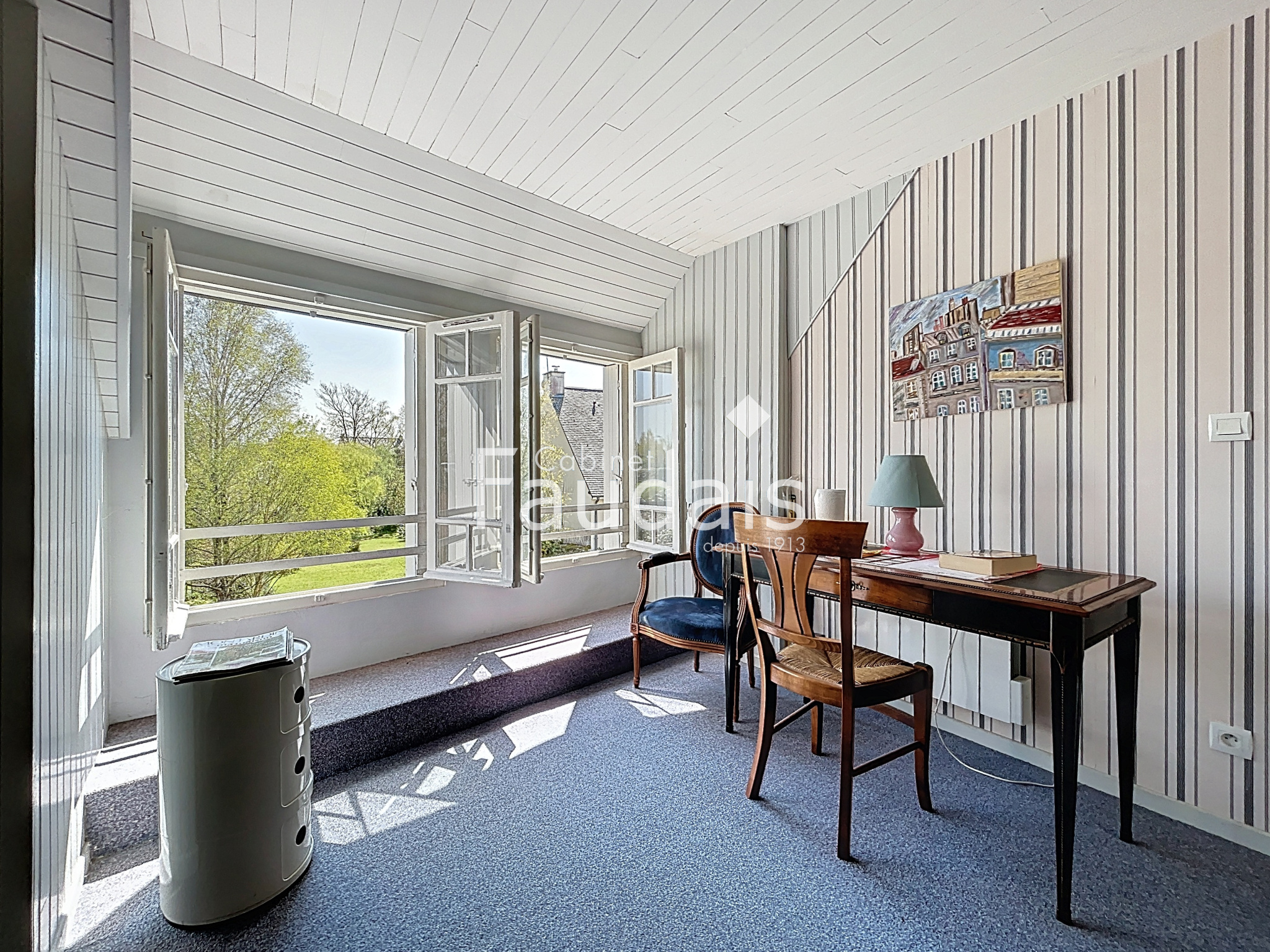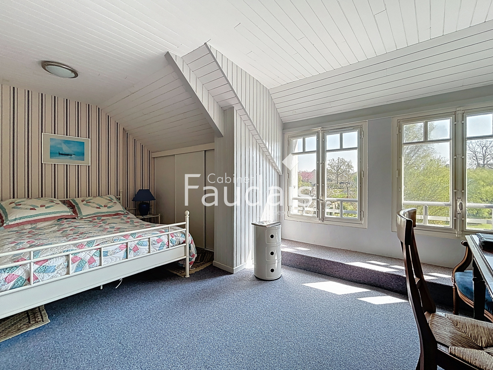 A l'étage un palier dessert deux grandes chambres et une salle d'eau avec WC.