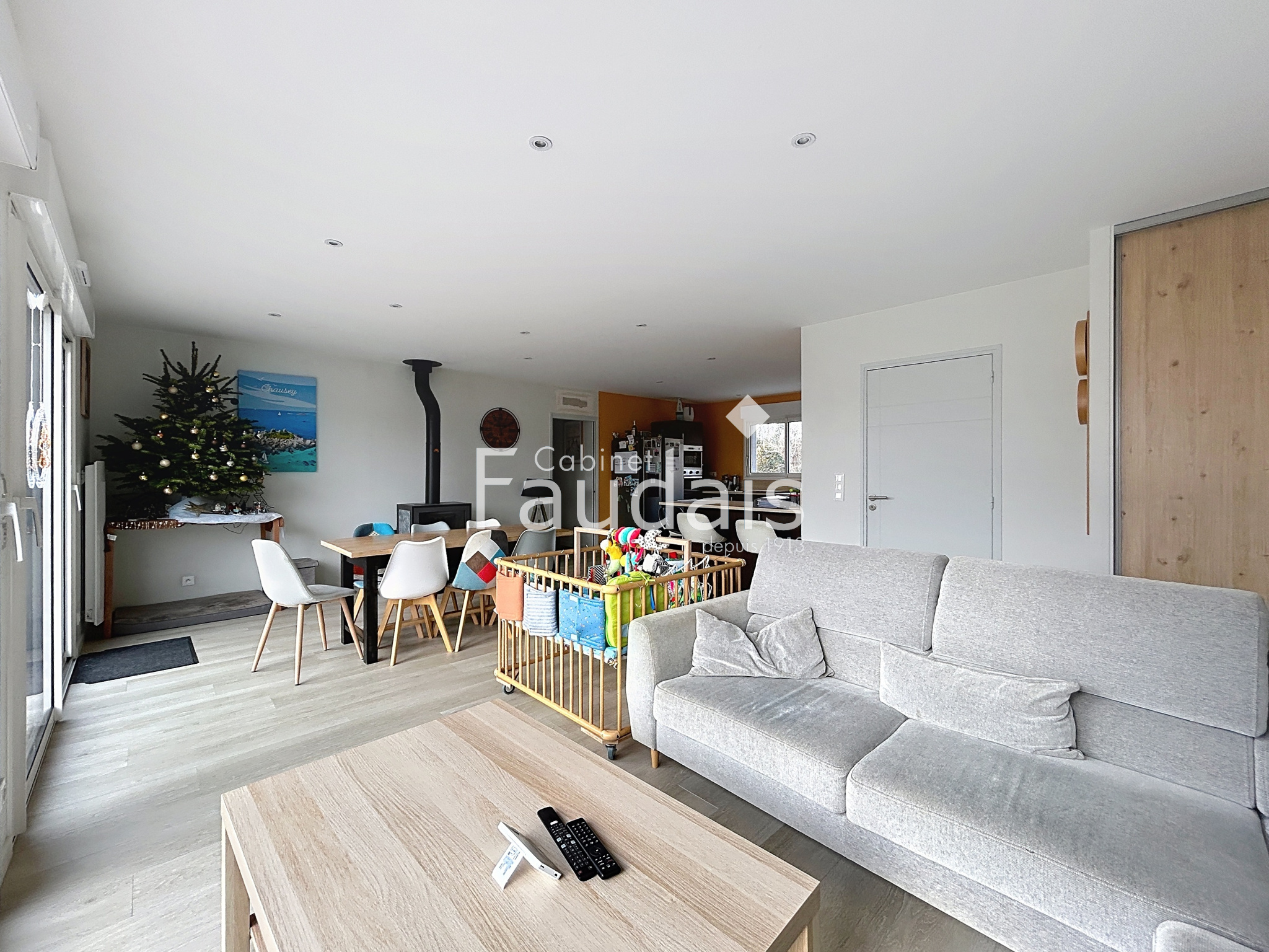 Fonctionnelle et lumineuse, elle offre une belle pièce de vie avec poele à bois, ouverte sur une cuisine aménagée et équipée, un espace nuit composé de trois chambres, une salle de bains et un WC indépendant ,une buanderie .