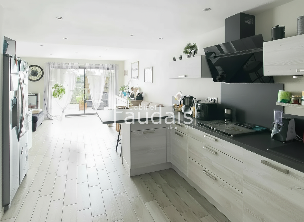 Gouville-sur-Mer (50560)Situé à Gouville-sur-Mer, le cabinet Faudais vous présente cette maison individuelle construite en 2018, offrant une vie confortable dans un environnement résidentiel, à seulement un kilomètre de la mer. Le rez-de-chaussée s’organise autour d’une pièce de vie traversante et lumineuse, comprenant une cuisine ouverte aménagée et équipée, un espace salon ainsi qu’une salle à manger. Cet espace permet un accès direct à la terrasse exposée plein sud et au jardin, conçu pour limiter l’entretien. Toujours au rez-de-chaussée, une chambre ainsi qu’une salle d’eau avec douche à l’italienne permettent une vie de plain-pied. Un accès direct au garage est possible depuis la cuisine, ce qui est pratique au quotidien. À l’étage, la maison comprend deux chambres, une salle de bain et une pièce pouvant facilement être transformée en troisième chambre. Le terrain accueille également un grand hangar non attenant, adapté au stationnement d’un camping-car, d’un bateau ou à un usage de stockage. Le portail d’entrée est motorisé. La maison bénéficie d’un bon classement énergétique (DPE : A), ne nécessite pas de travaux, et se situe à environ 2,5 kilomètres des commerces.