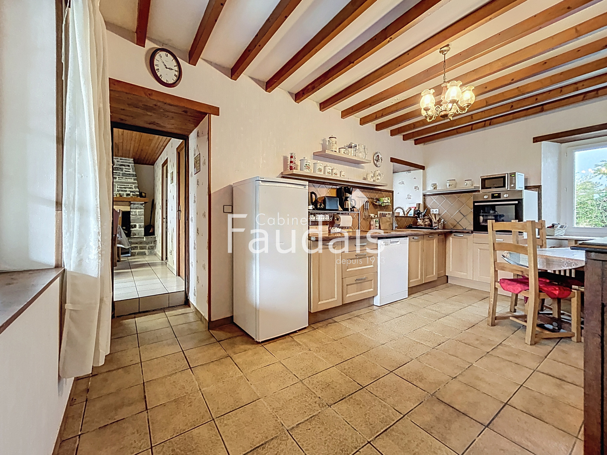 Saint-Maurice-en-Cotentin (50270)Située à 10 minutes de la mer, le CABINET FAUDAIS vous présente en EXCLUSIVITÉ cette grande longère en pierre offrant une vie possible de plain pied. Elle se compose au rdc : entrée par un patio, cuisine semi équipée, séjour, salon avec cheminée, dégagement donnant sur une chambre, salle de bain, wc. Etage : palier desservant 3 belles chambres, salle de bain / wc. Chaufferie / cellier sur le côté, garage et grenier. Le tout sur un terrain de 793 m² avec terrasse exposée sud. La campagne à 10 minutes de la mer et des commodités et surtout, l'école se trouve dans le village !