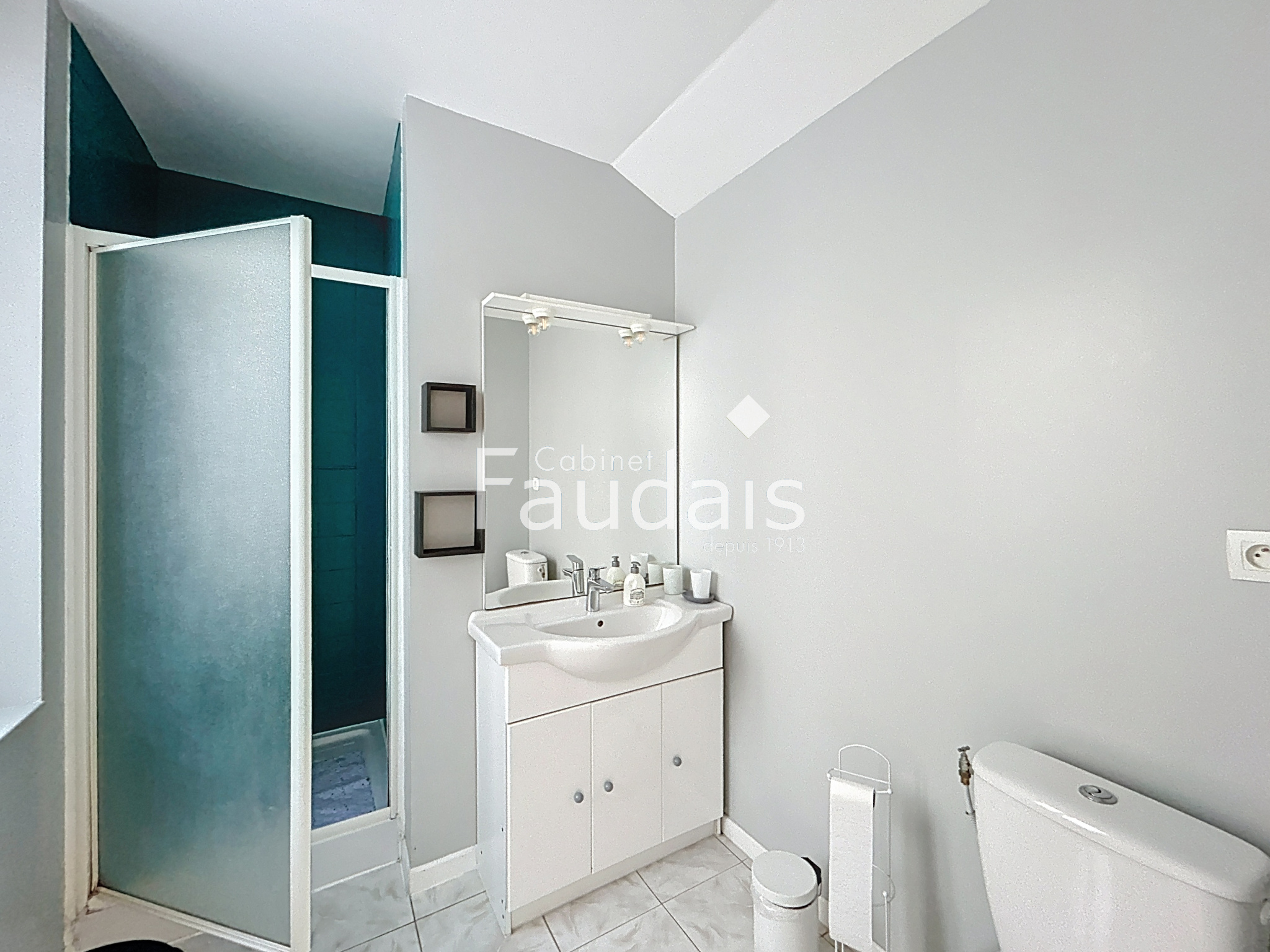 LOGEMENT 2 : Au 1er étage une cuisine, un séjour, 2 chambres en enfilade et 2 salle d'eau avec WC. On retrouve également une petite terrasse de 9m2.