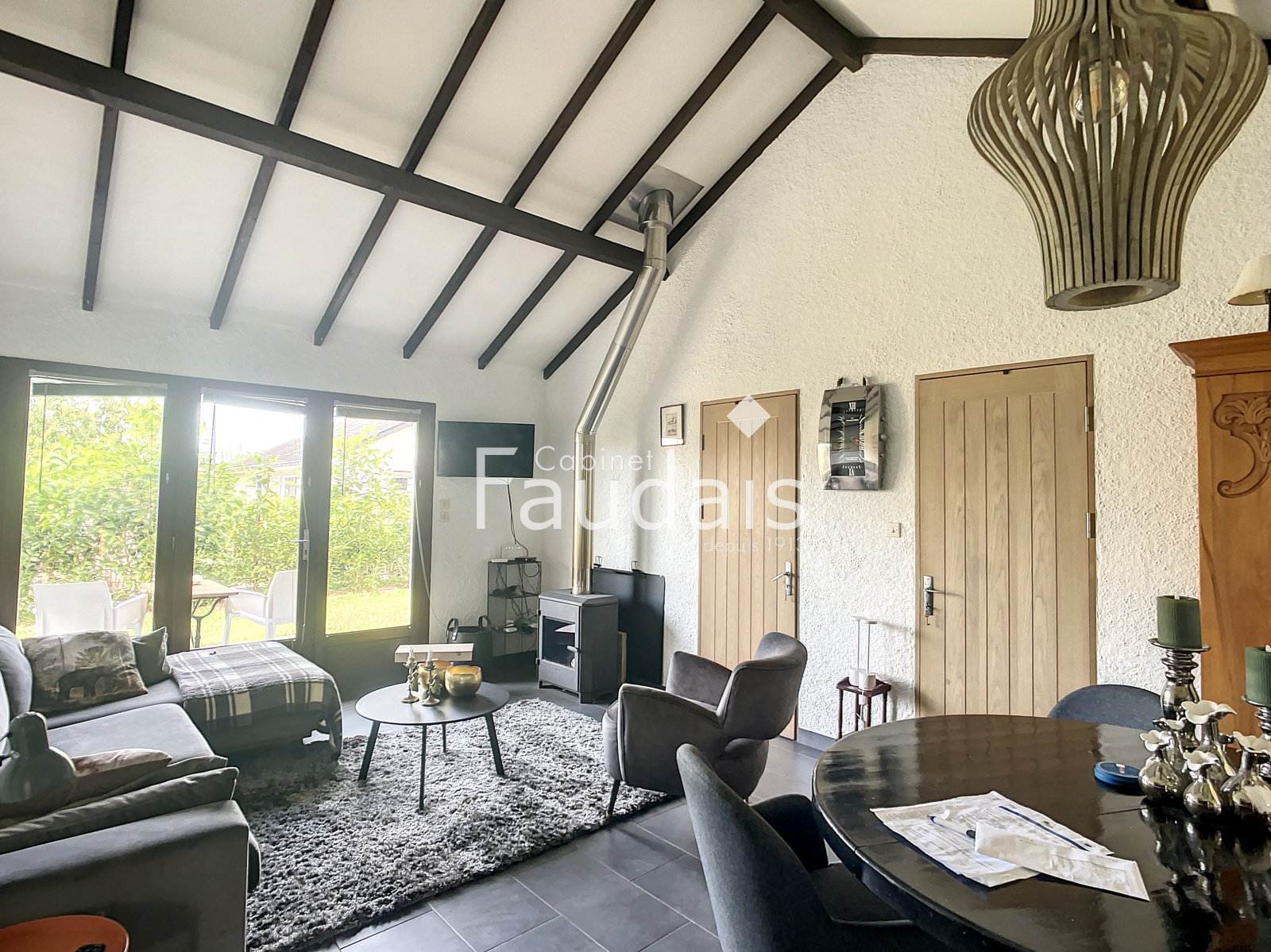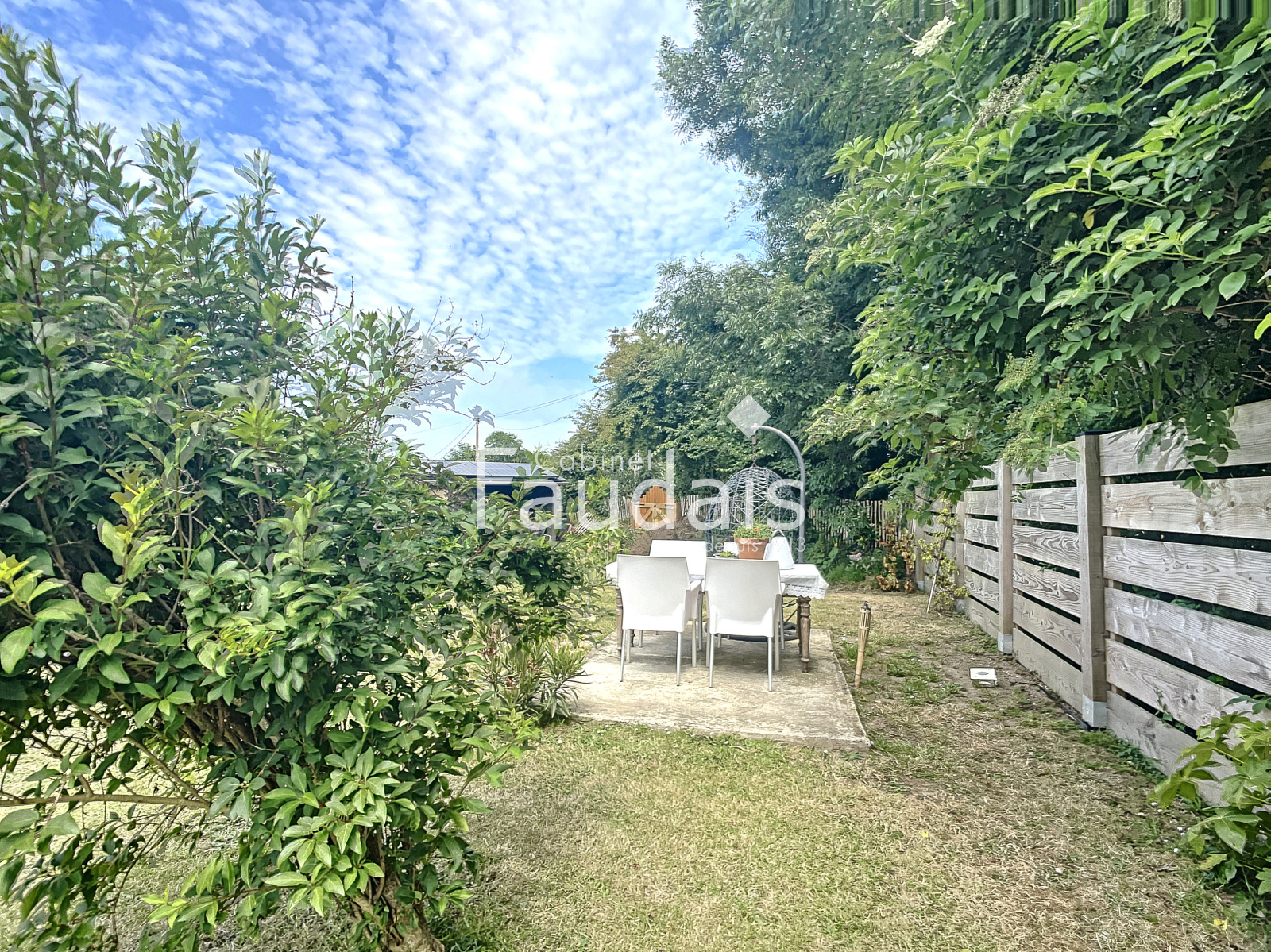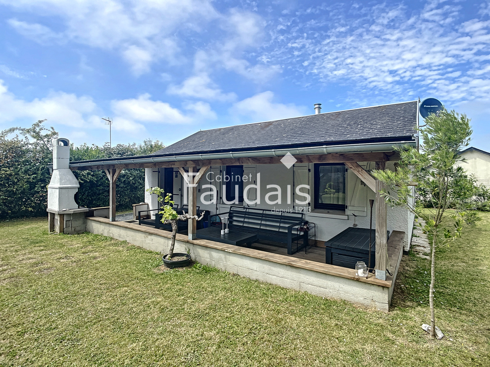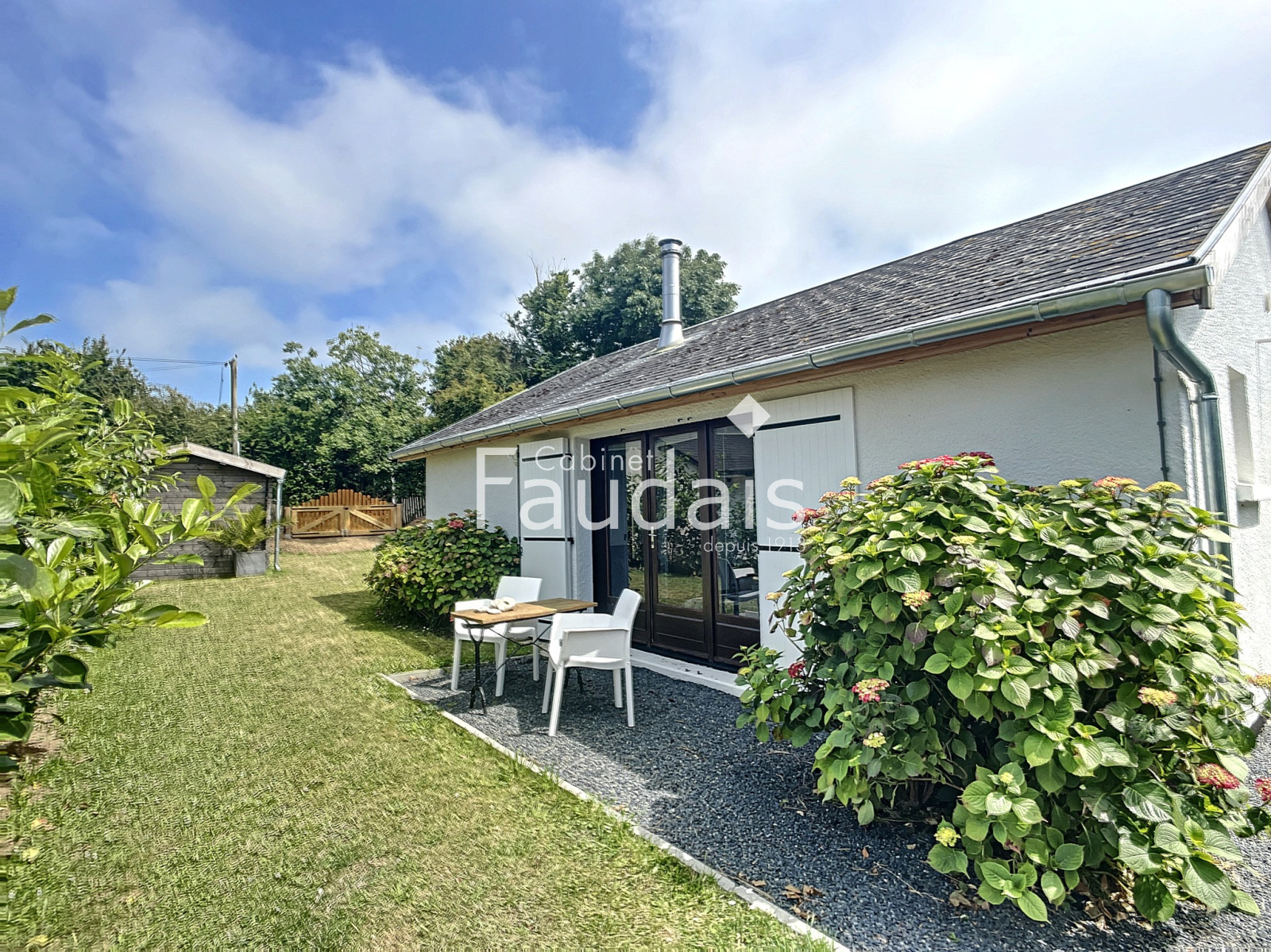 Grandcamp-Maisy (14450)A Grandcamp Maisy le CABINET FAUDAIS vous présente cette maison idéale pour un pied à terre à la mer. Elle est composée d'une terrasse plein sud avec une belle vue sur le jardin. Cette maison de plein pied est composée d' une cuisine aménagée et équipée ouverte sur un séjour avec un beau plafond cathedrale, 2 chambres et une salle d'eau avec toilette. Un abri de jardin et un abri bois completent ce bien, le jardin fait environ 590m².