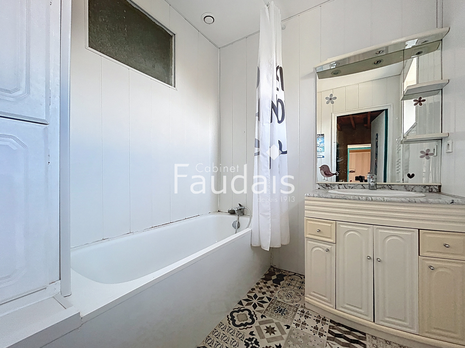 A l'étage un palier dessert deux chambres , une salle de bains et un WC et au dernier niveau un dortoir avec lavabo et une chambre viennent compléter ce bien.