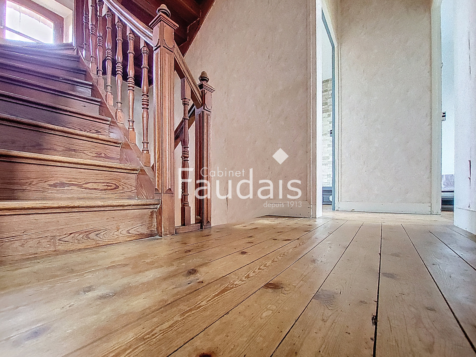 Au premier étage, le palier distribue trois belles chambres et une salle de bains.