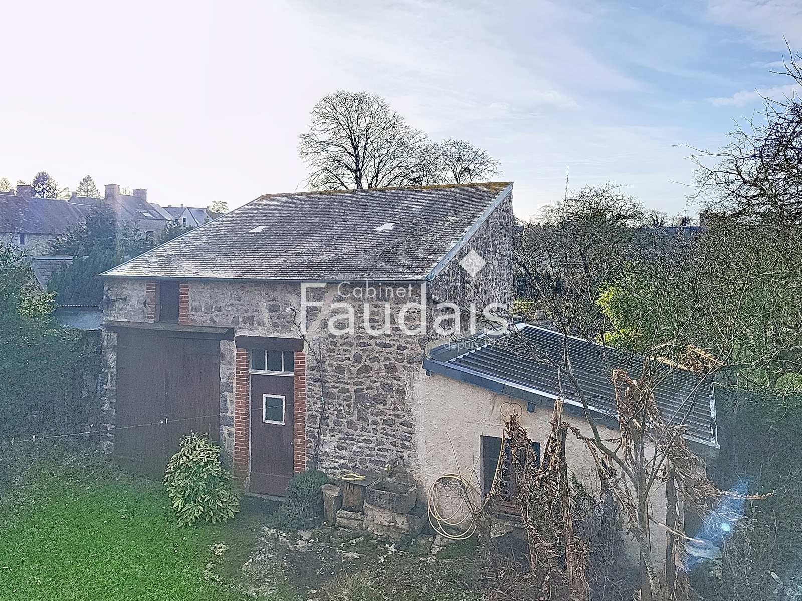 À l’extérieur, le jardin accueille deux dépendances, idéales pour du stockage ou des projets annexes, tandis qu’une cave complète l’ensemble.