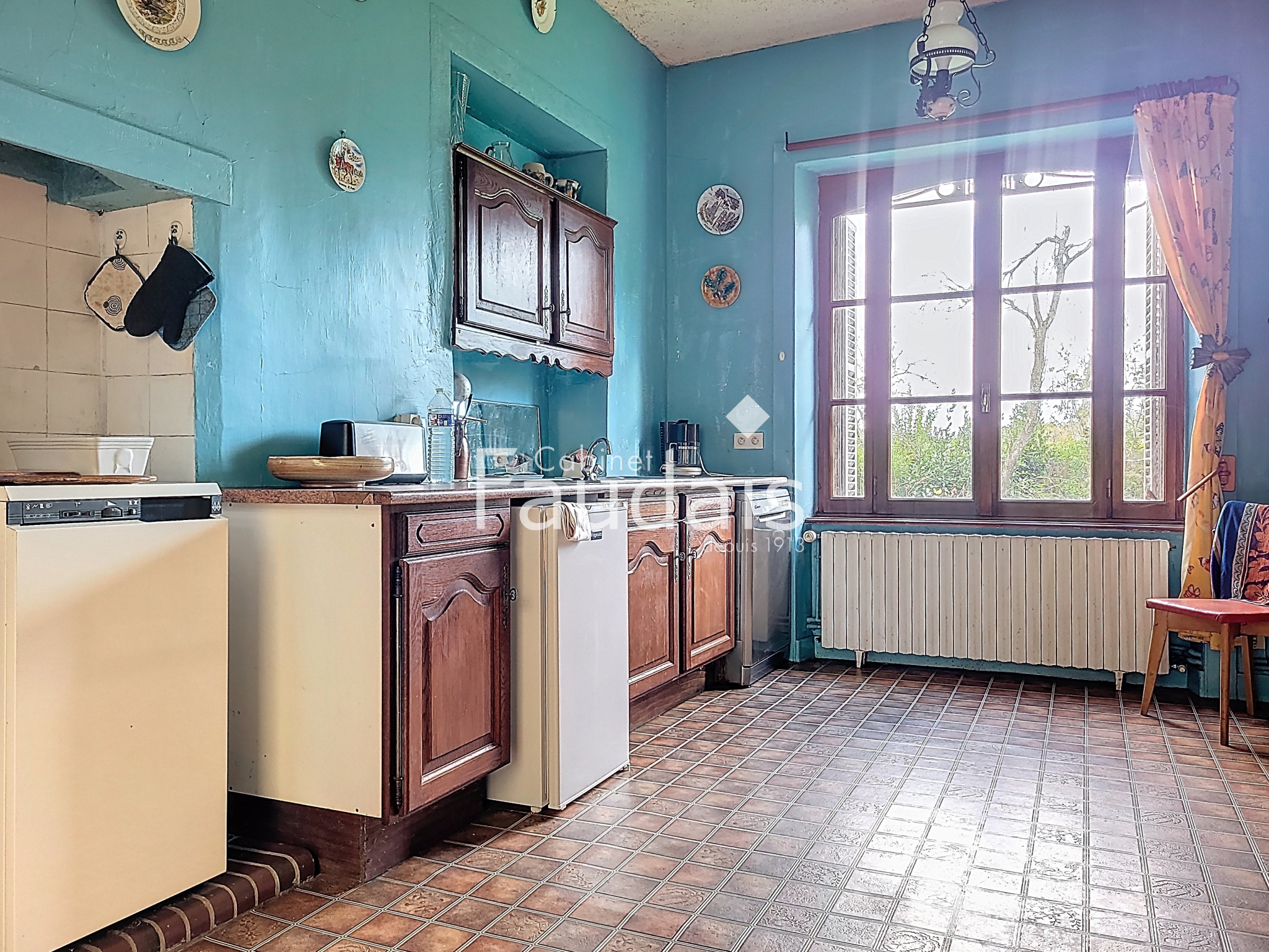 Dès l’entrée, le rez-de-chaussée dessert un salon, une vaste cuisine, une arrière-cuisine, une salle d’eau avec WC, ainsi que l’escalier menant aux étages.
