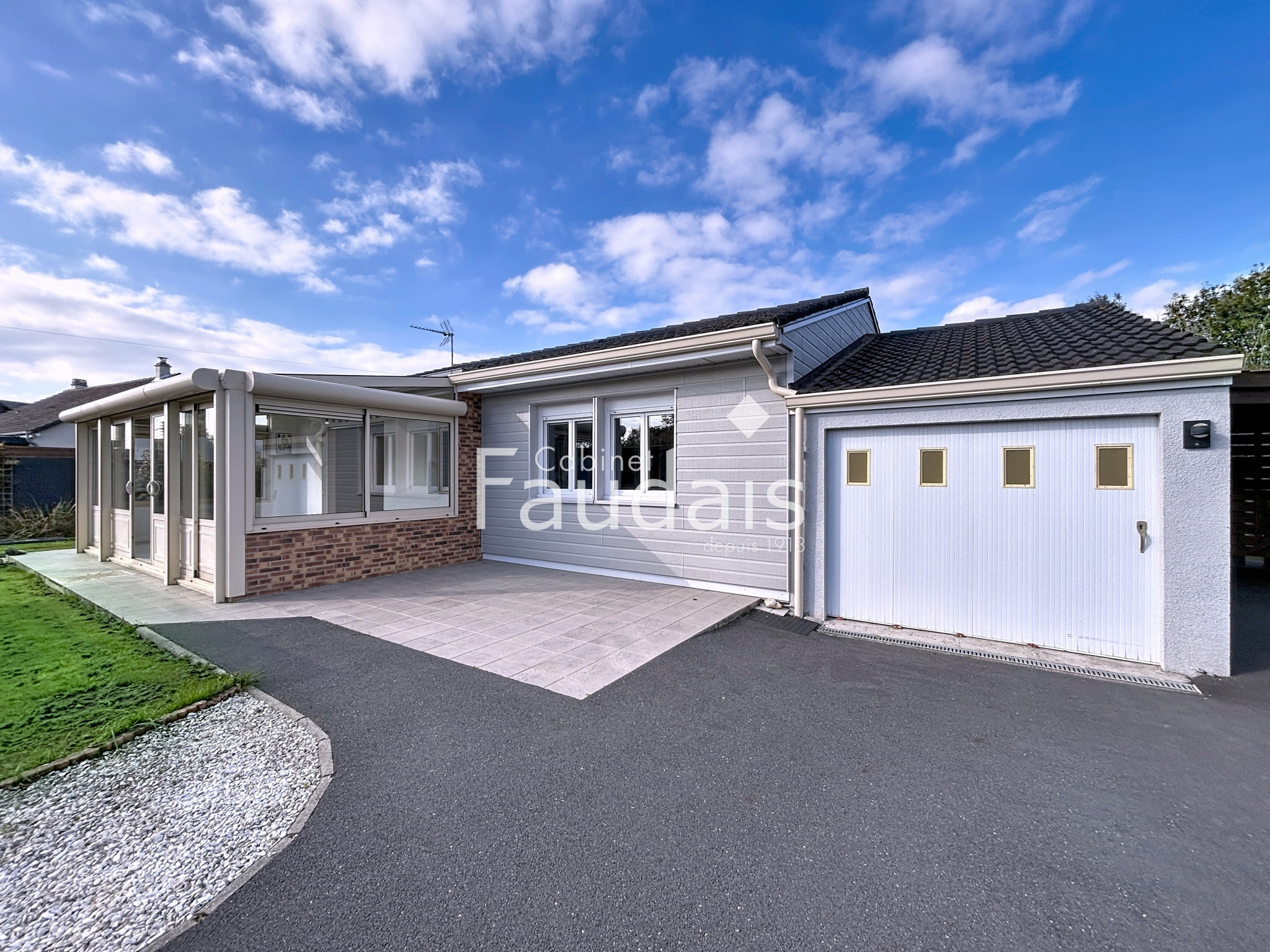 Agon-Coutainville (50230)Idéalement située à seulement 2,5 km des plages et de toutes les commodités, le Cabinet FAUDAIS vous présente cette chaleureuse maison de plain pied en parfait état.