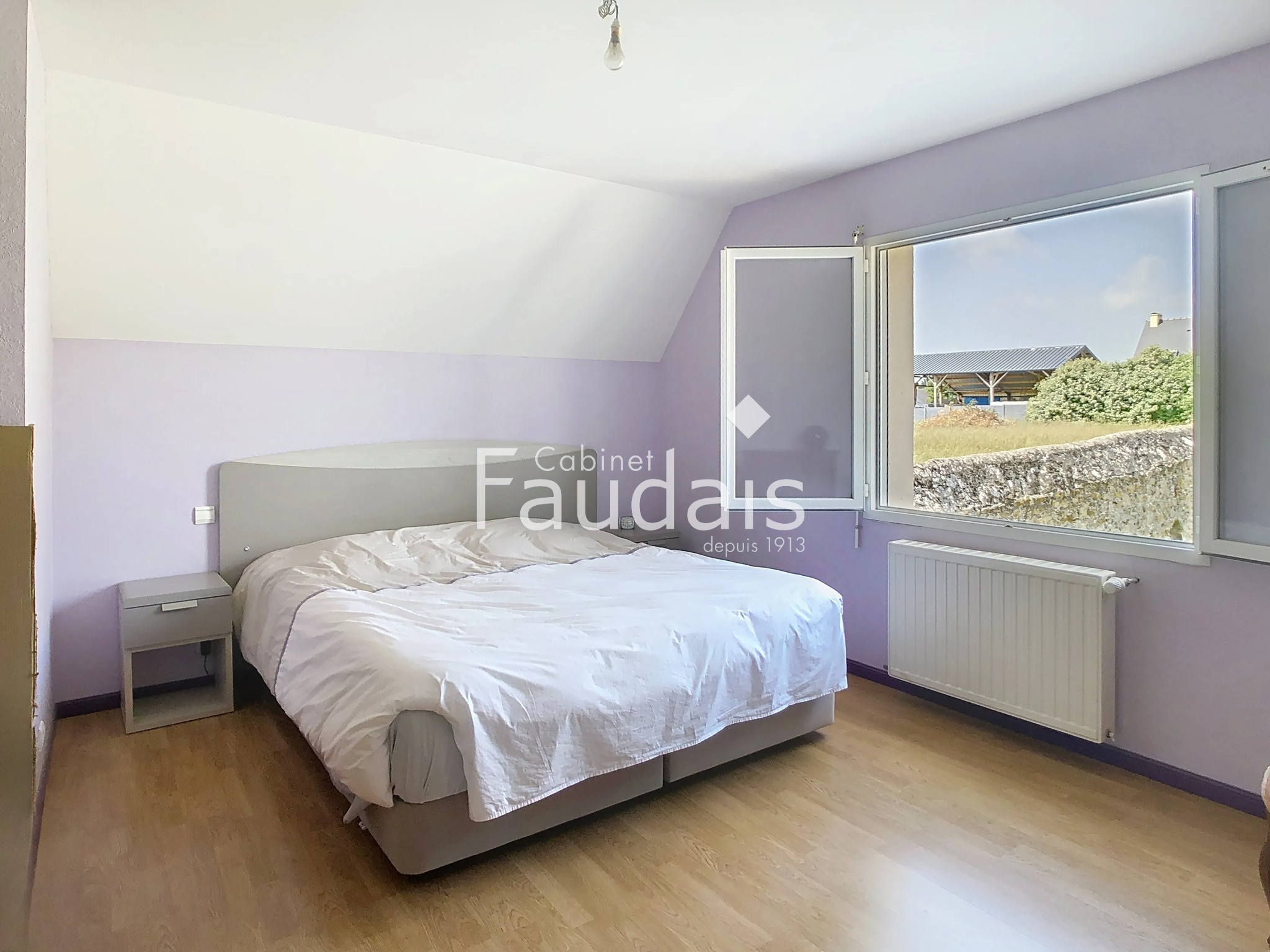 À l’étage, un palier dessert trois chambres, dont deux avec une vue dégagée sur la baie de Sienne, ainsi qu’une salle de bains. Le grenier est isolé.