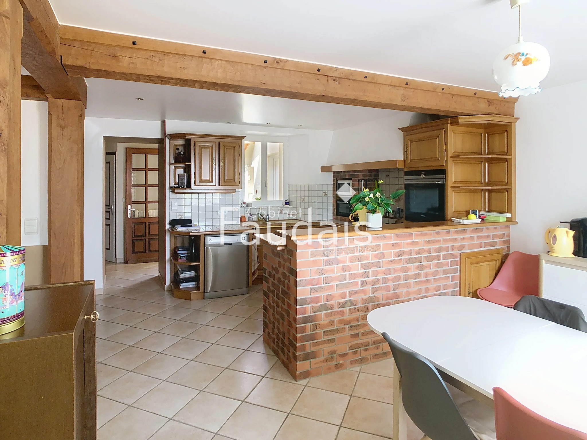 D’une surface habitable de 160 m², elle se compose au rez-de-chaussée d’une cuisine aménagée et équipée de 24 m² ouverte sur un grand salon de 38 m², d’une véranda lumineuse de 13 m², d’une salle d’eau, d’un cellier et d’une cave.